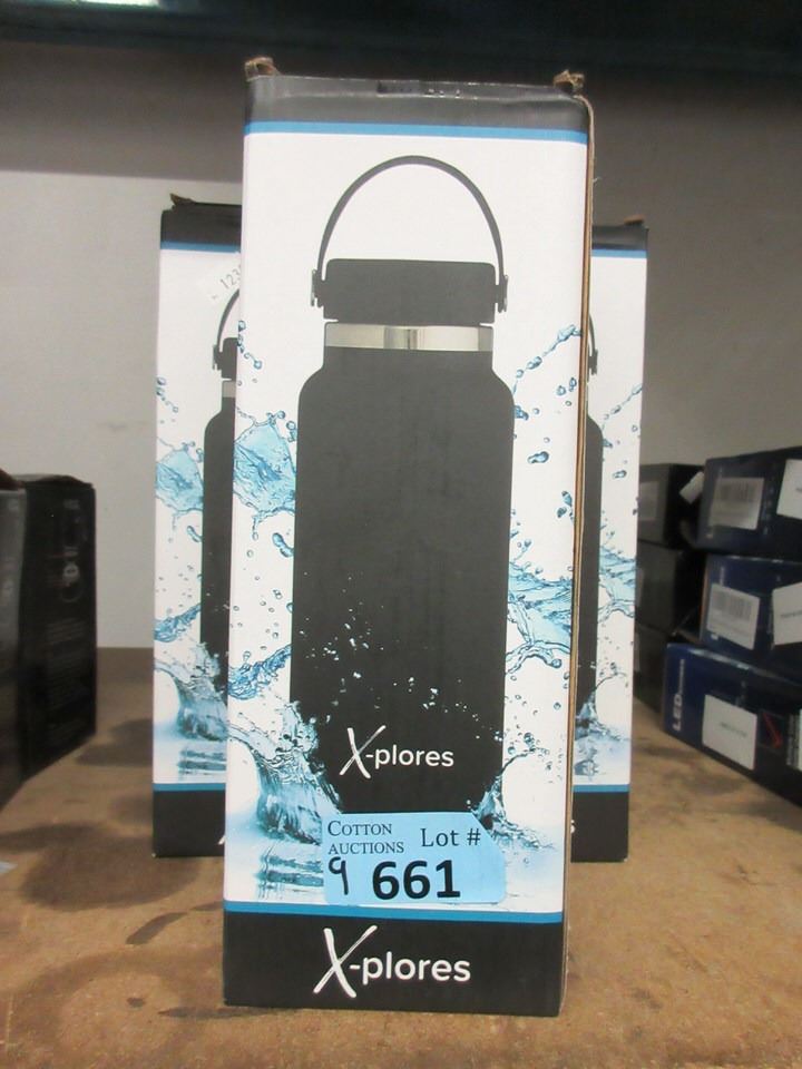 Stainless steel. Keeps drinks cold for 24 hours and hot for 12 hours.