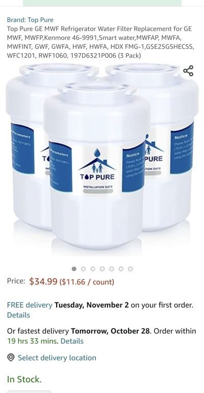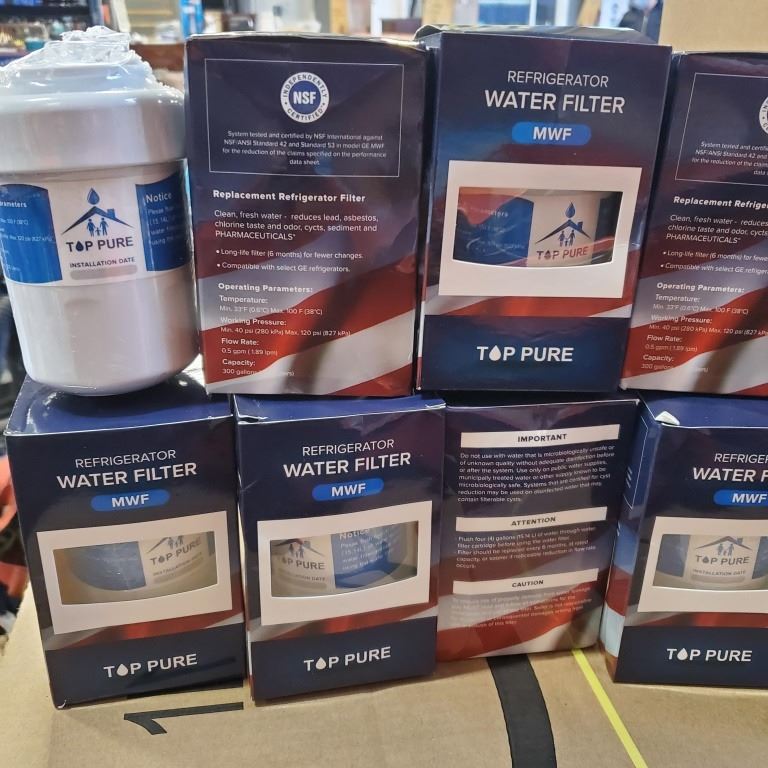 9 New Top Pure GE MWF Refrigerator Water Filter Replacement for GE MWF, MWFP,Kenmore 46-9991,Smart water,MWFAP, MWFA, MWFINT, GWF, GWFA, HWF, HWFA, HDX FMG-1,GSE25GSHECSS, WFC1201, RWF1060