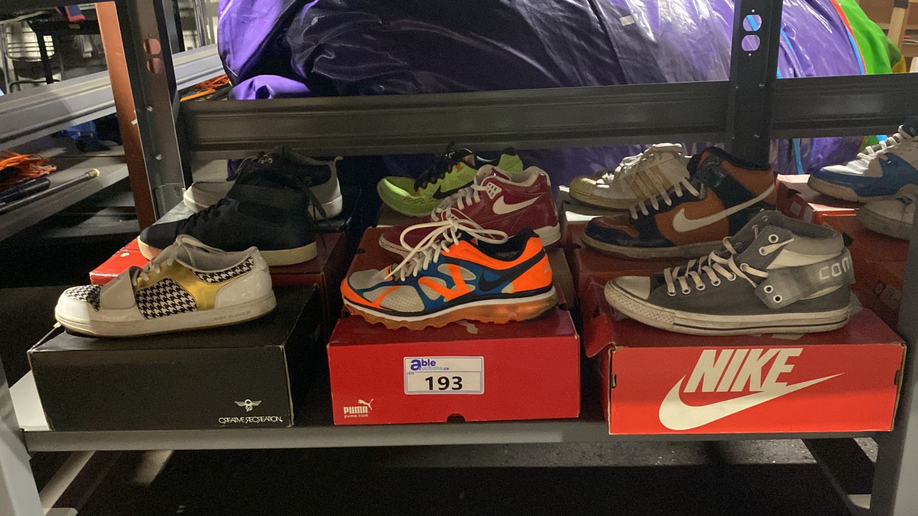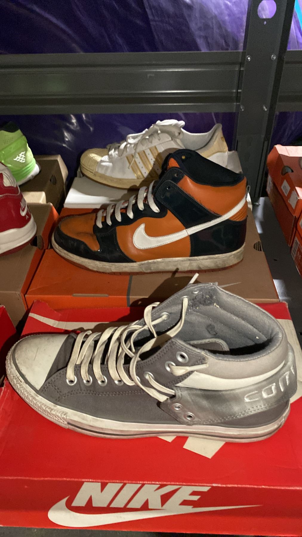 9 PAIRS OF ASSORTED STYLE / SIZE USED VINTAGE COLLECTOR SHOES *AUTHENTICITY UNKNOWN*