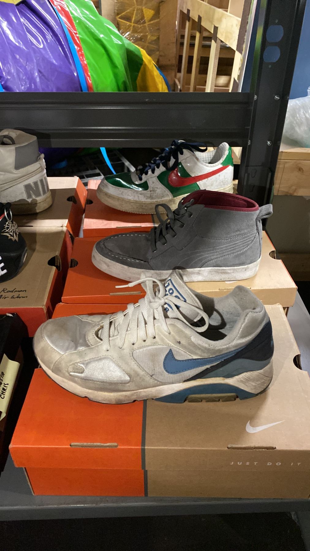 9 PAIRS OF ASSORTED STYLE / SIZE USED VINTAGE COLLECTOR SHOES *AUTHENTICITY UNKNOWN*