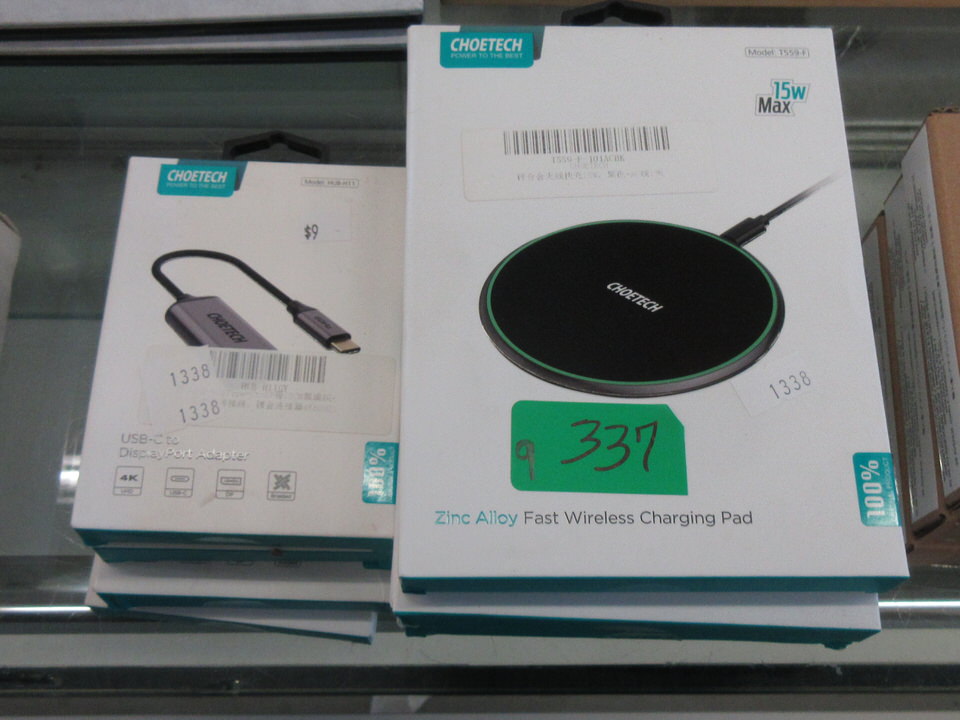 5 Wireless charging pads and 4 USB-C to display port adaptors. Individually boxed.