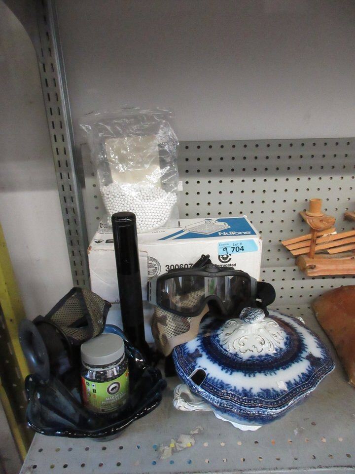 Mag flashlight, googles, bathroom fan vent, BBs & more