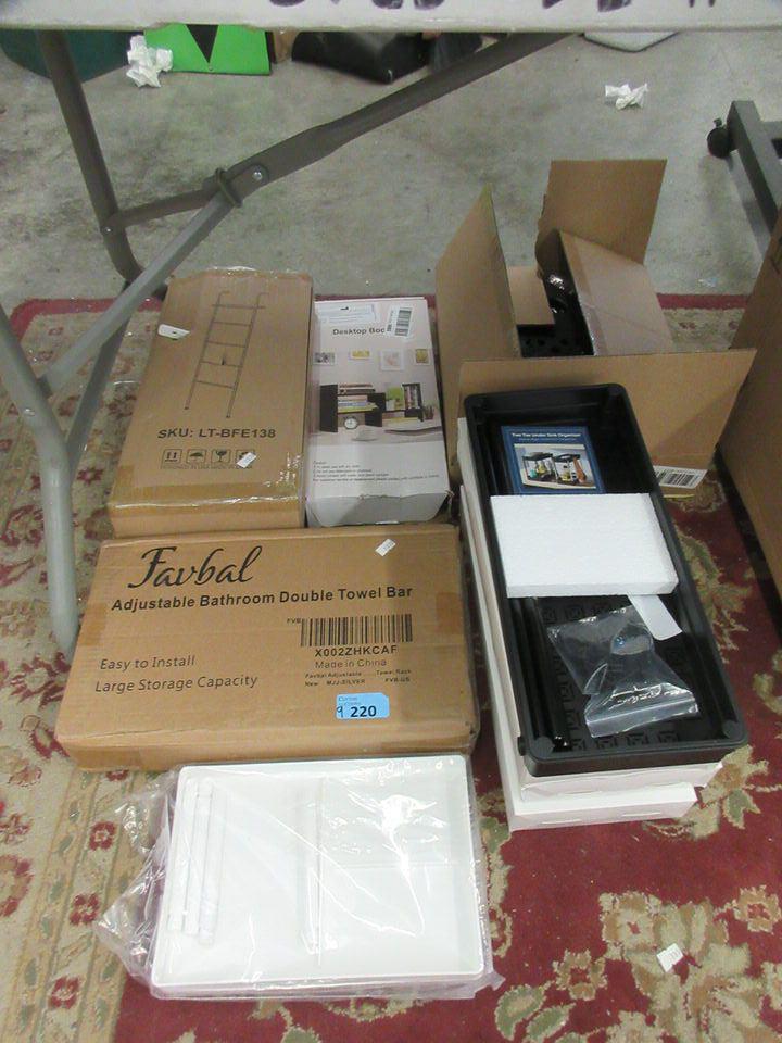 2 tier under counter organizers, towel bars, desktop shelf, and ,metal blanket ladders.
