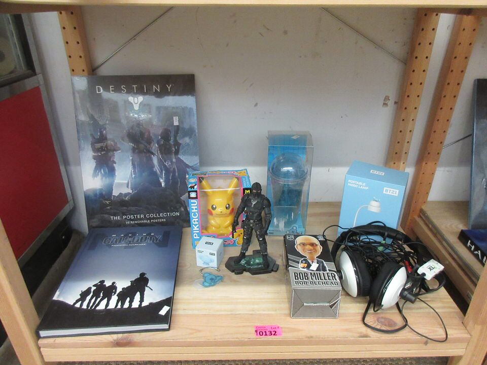 Destiny 20 poster book, Making Call of Duty book, Bob Miller bobble head, headphones, mood lamp and more.