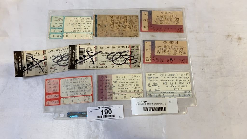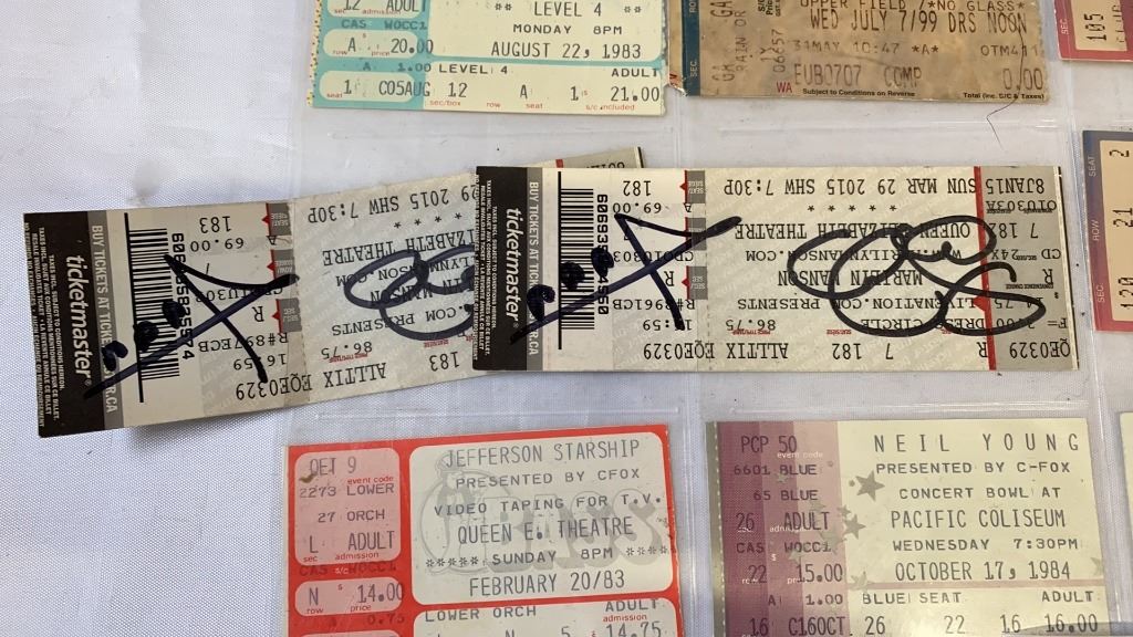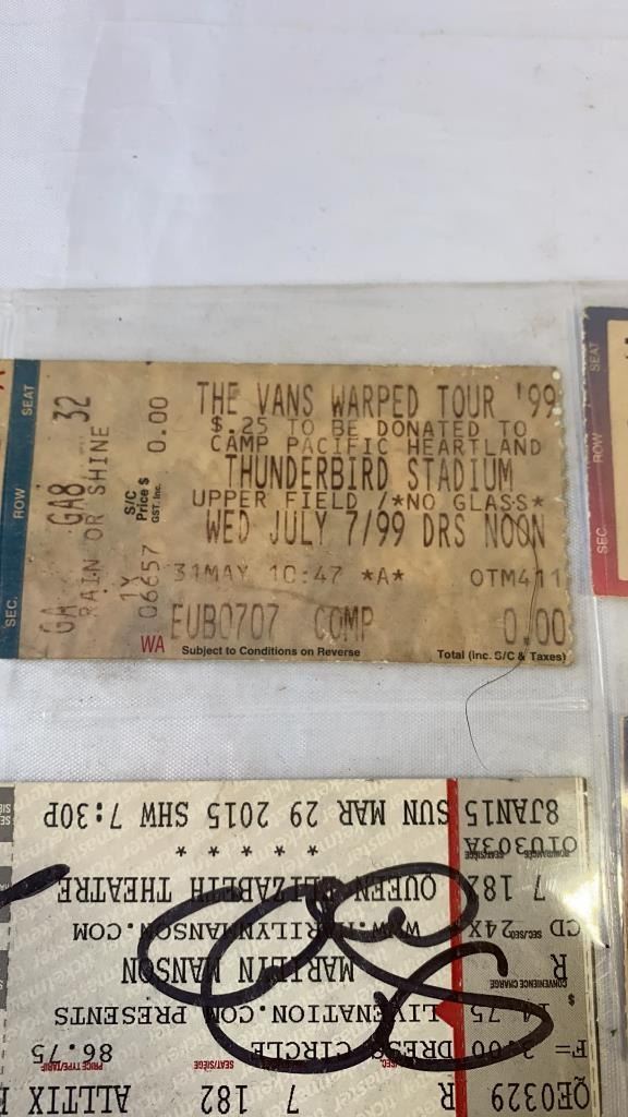 9 ROCK CONCERT TICKET STUBS - 2 SIGNED BY MARILYN MANSON