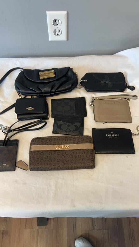 9 UNAUTHENTICATED DESIGNER WOMENS WALLETS - MARC JACOBS, GUESS, COACH, MICHAEL KORS, ETC