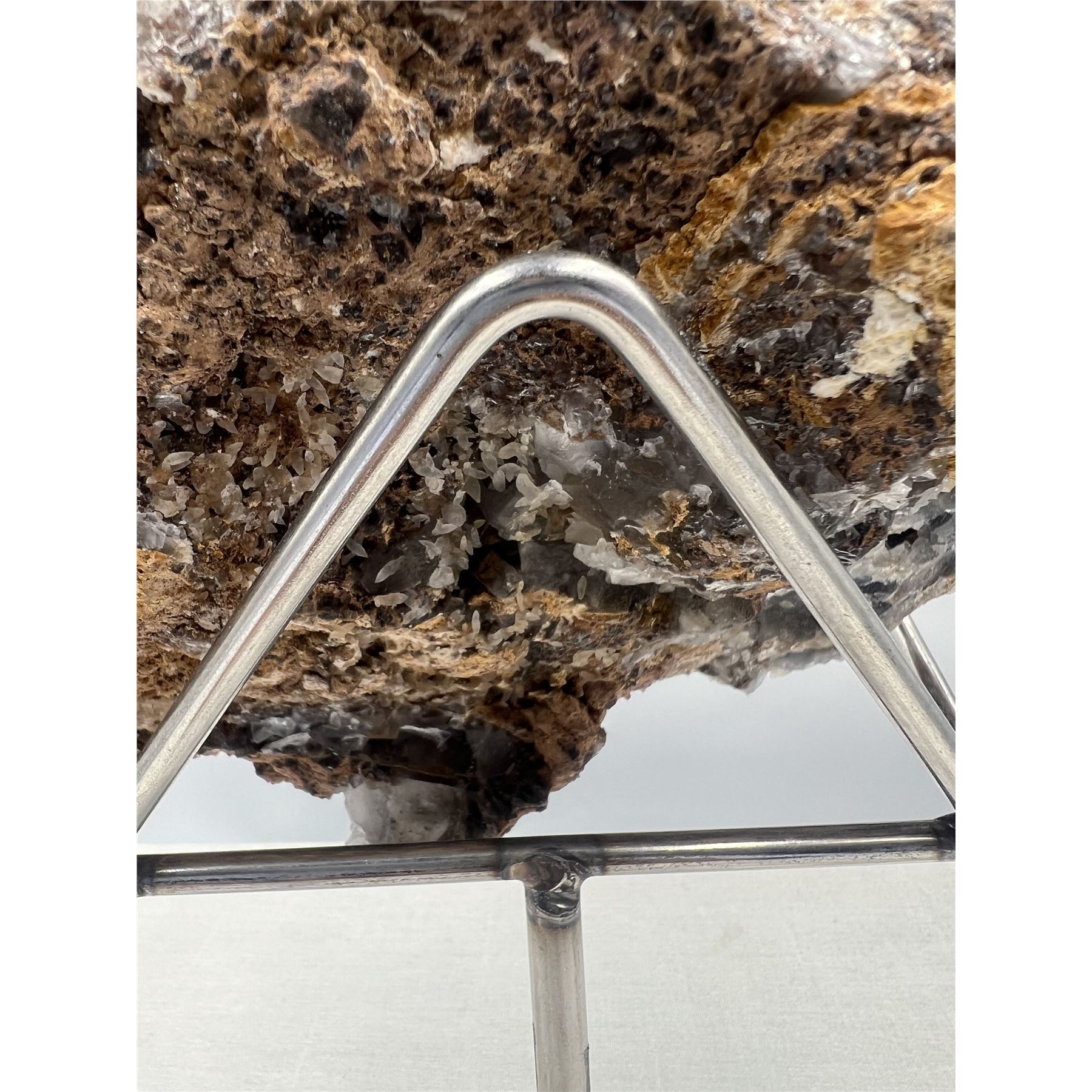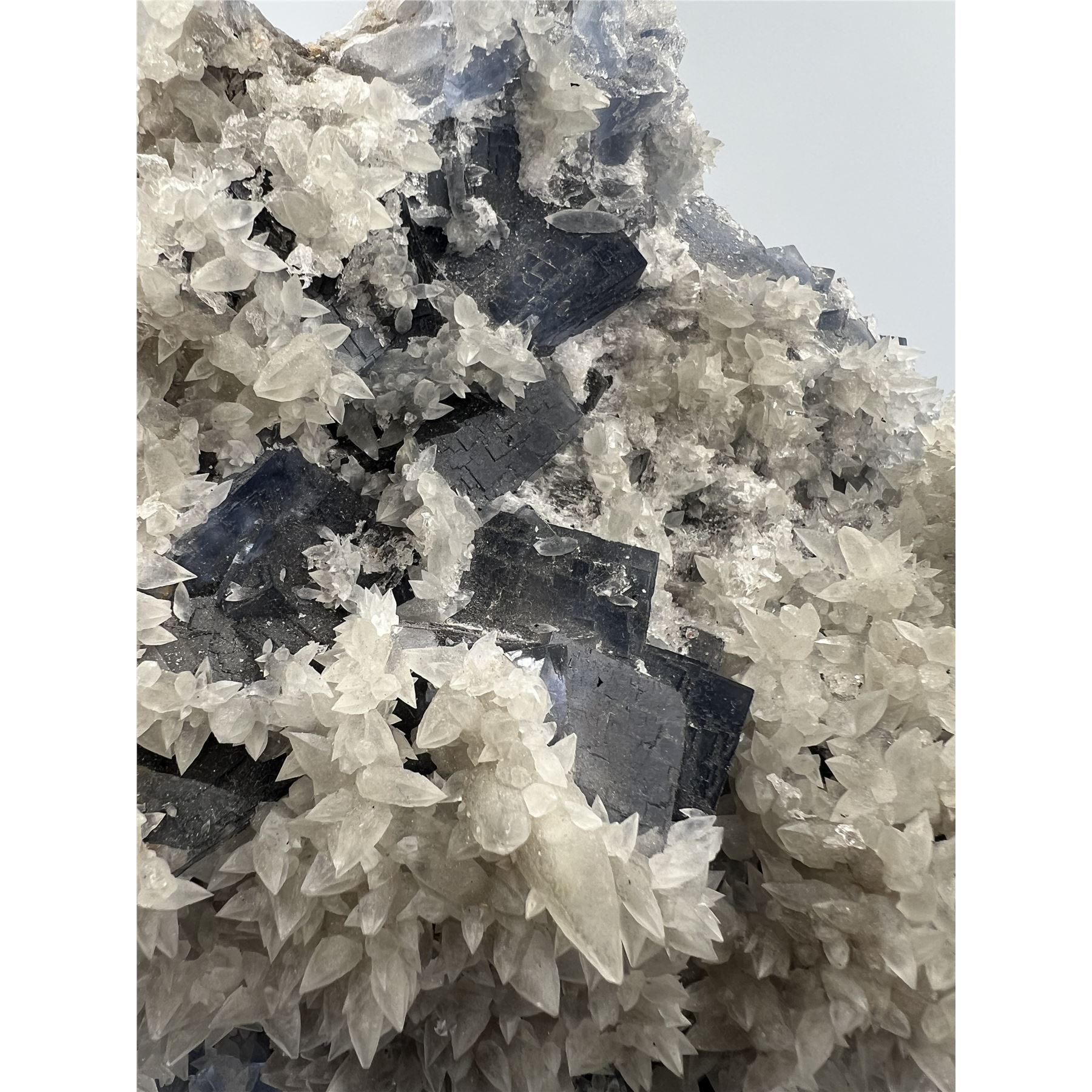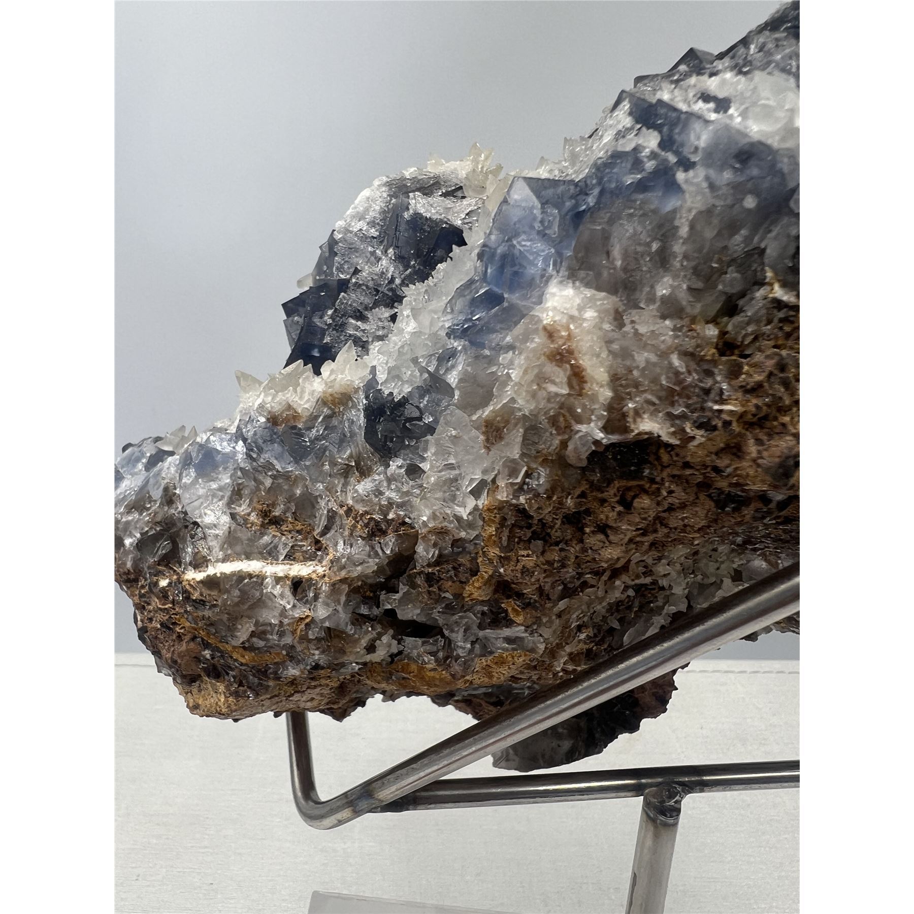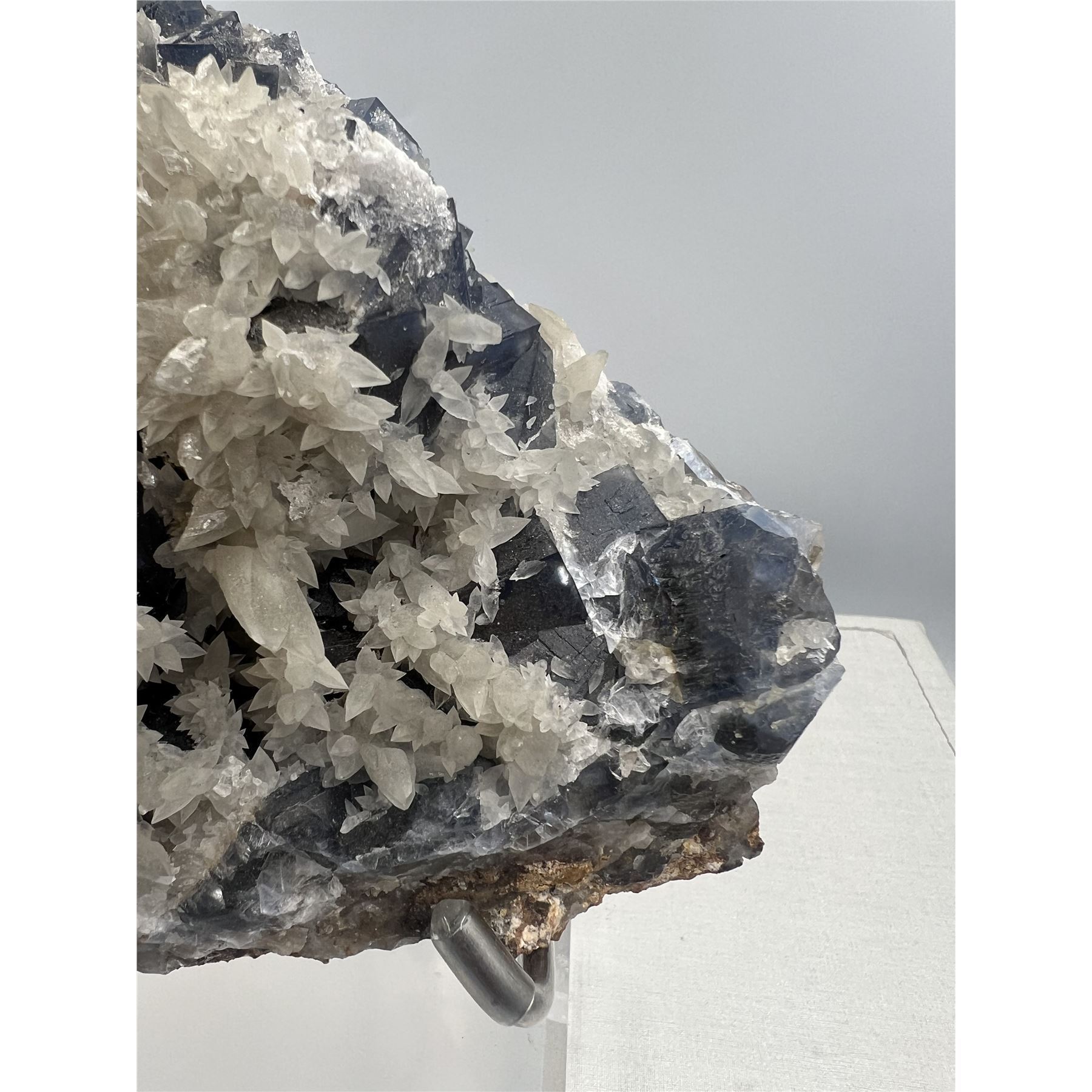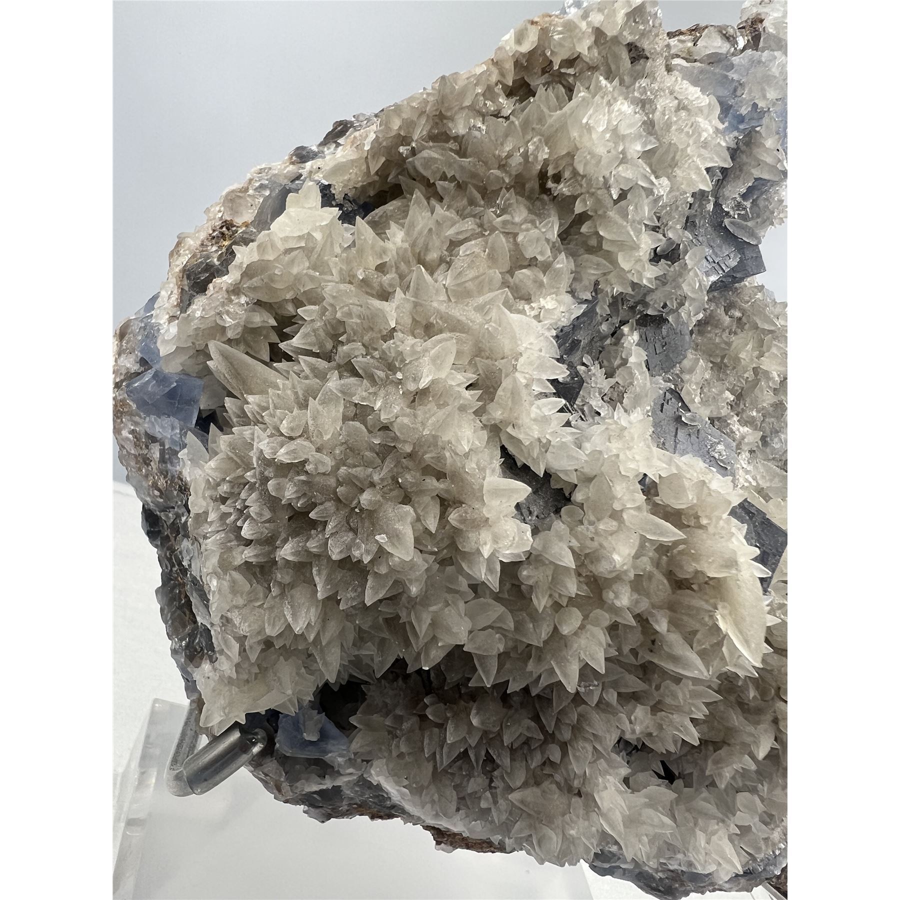 9 X 11 INCH FLUORITE WITH FLOWER CALCITE QUARTZ ON STAND