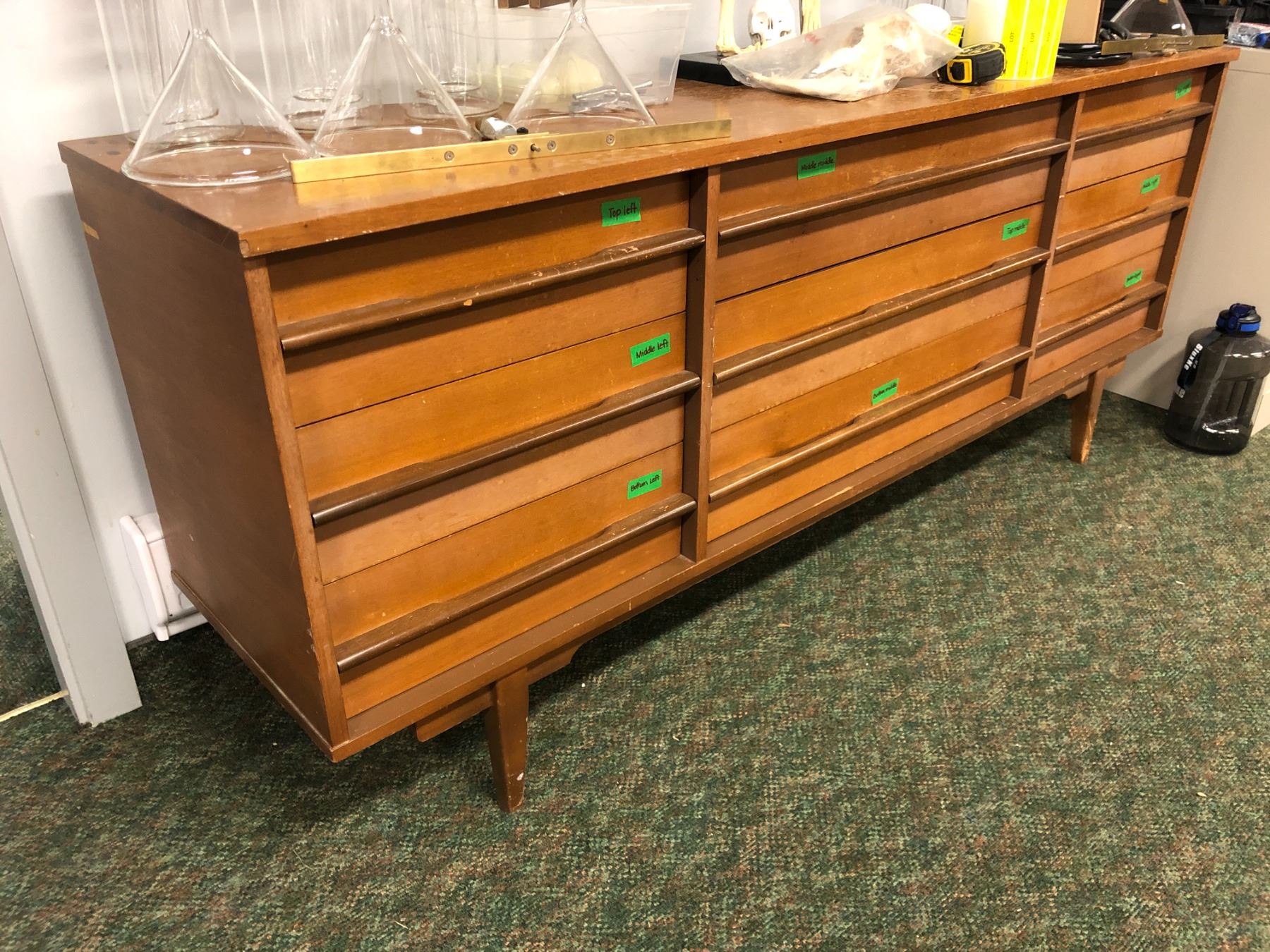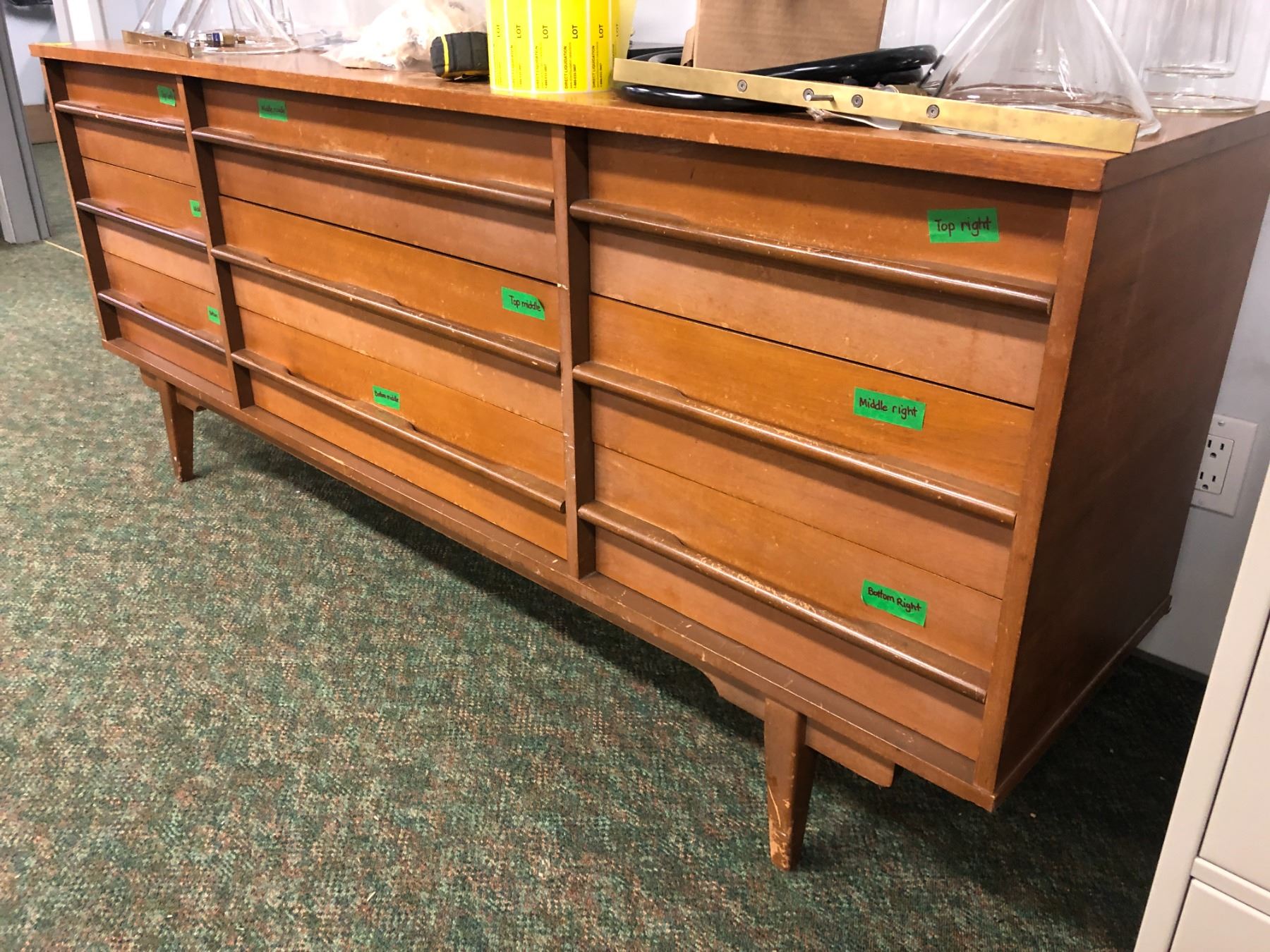 9 drawer mid-century wood veneer long dresser