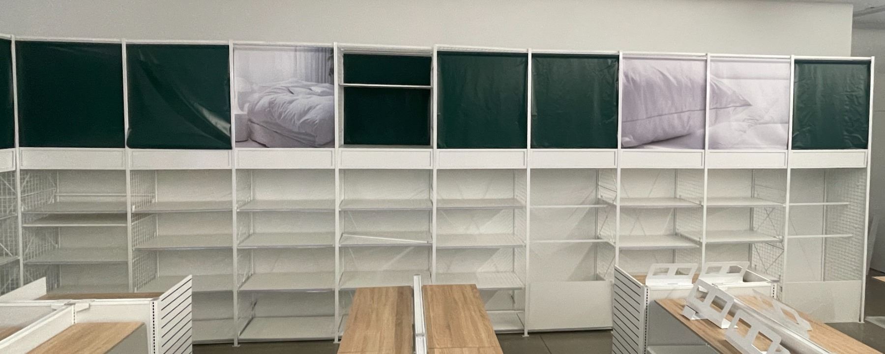 9 rows of 4 retail shelves (approx. 36ft W 148in H 26in D - excellent condition) BIDDERS ARE RESPONSIBLE FOR ALL COSTS ASSOCIATED WITH PICKUP OF THEIR LOTS INCLUDING BUT NOT LIMITED TO RENTAL OF EQUIPMENT, FORKLIFTS, LABOUR, TRUCKING, TOOLS ETC.