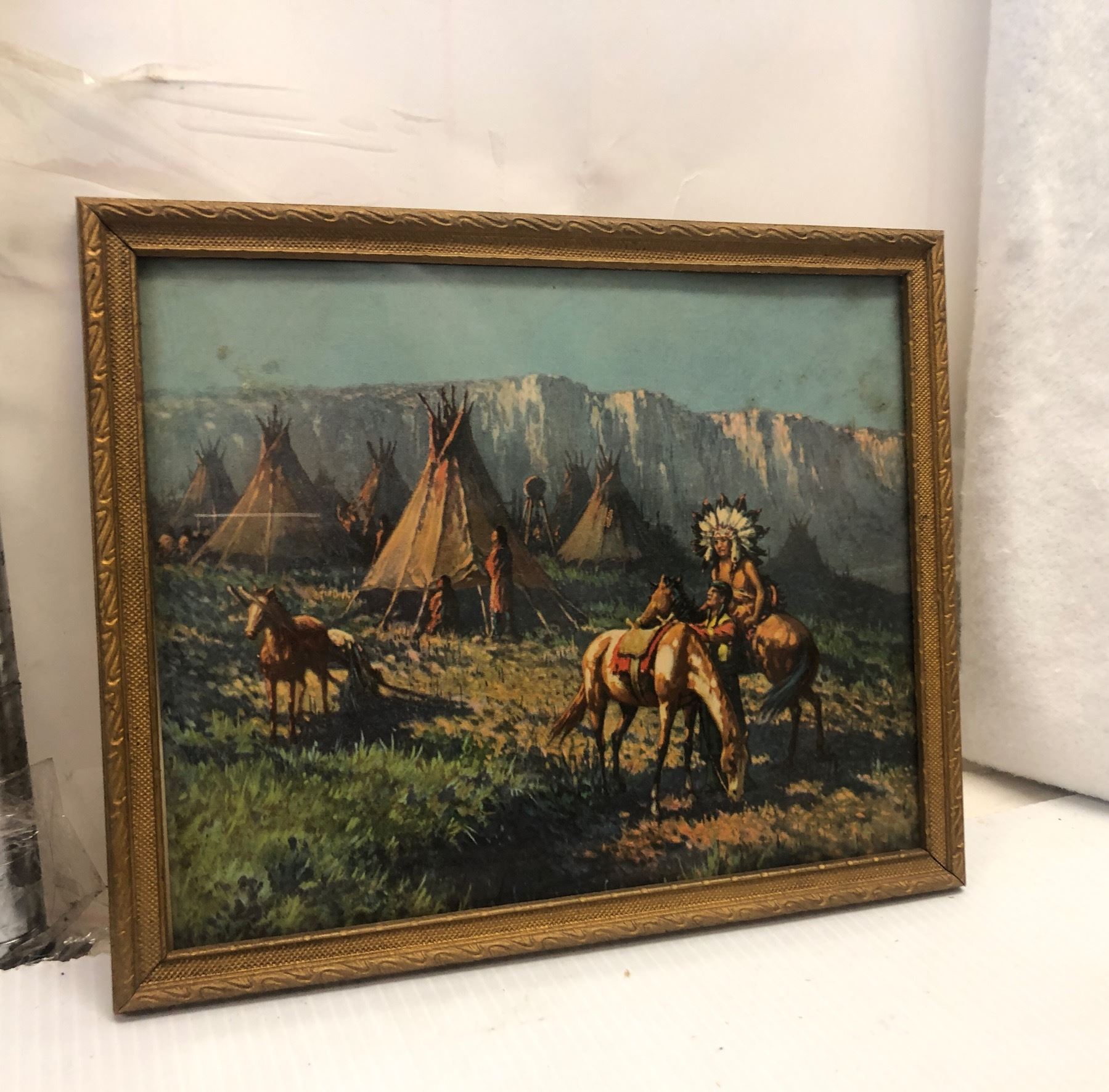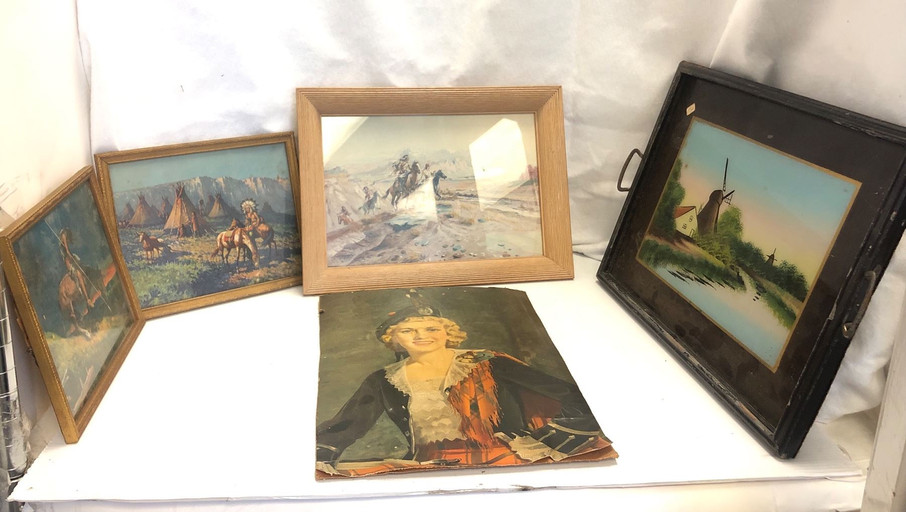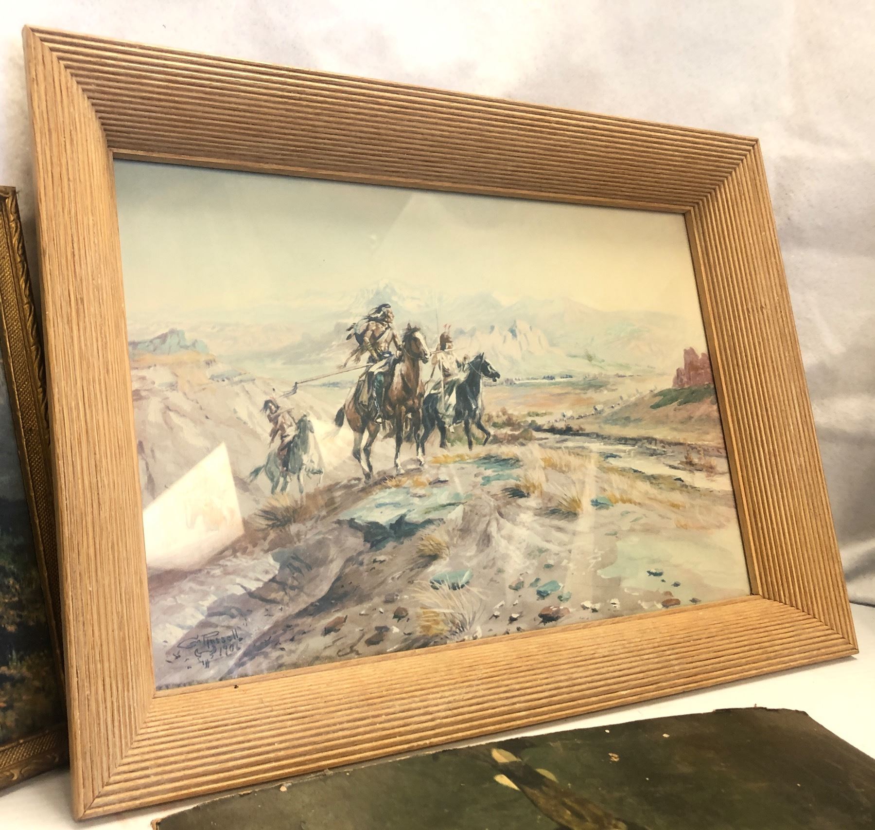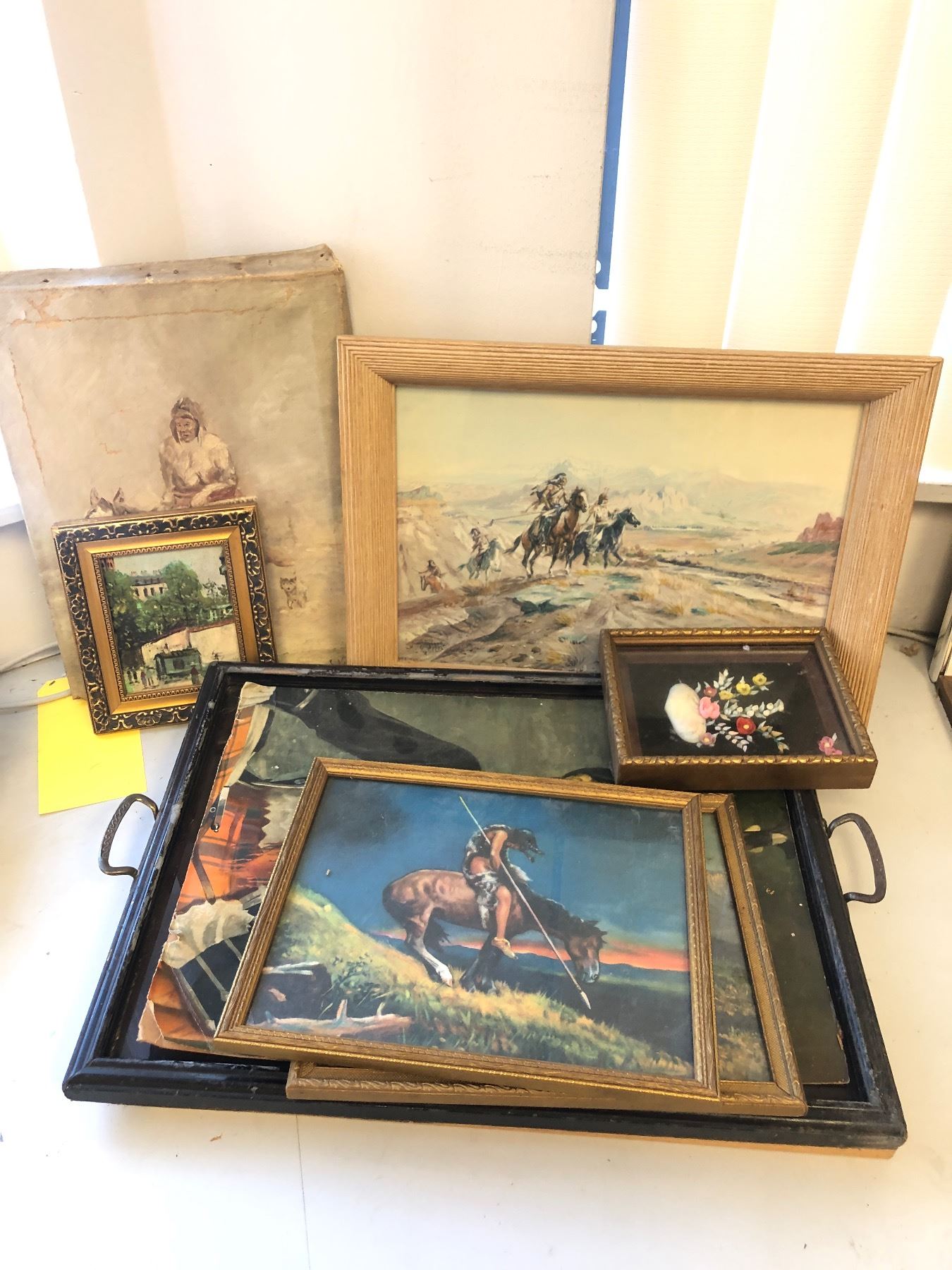 9 vintage estate portraits - includes Native American Indian camp horses (approx 11" x 9") / Native Americans on horseback (approx 11" x 9") / end of trail painting etc