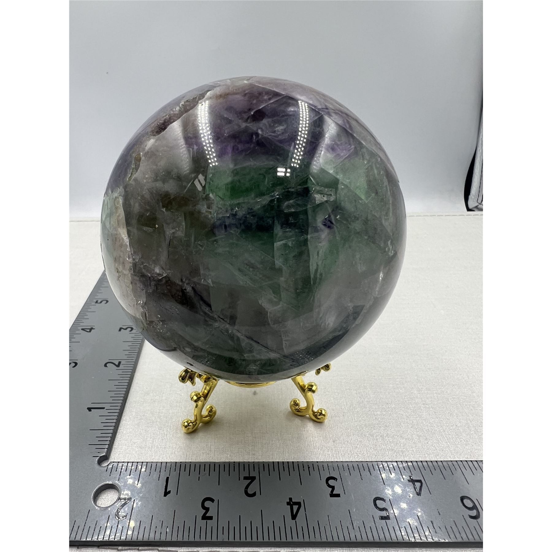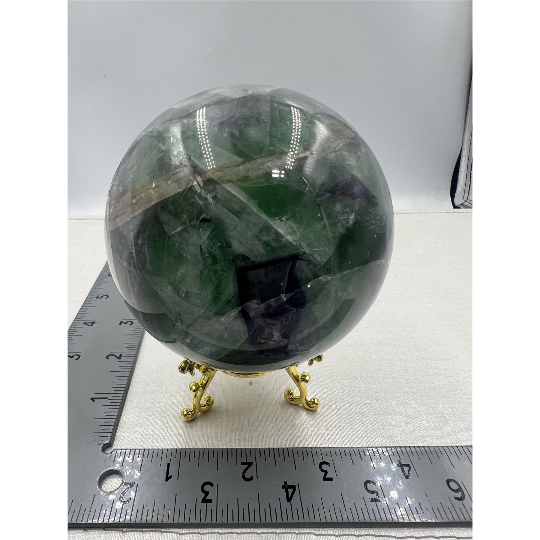 91 MM GREEN PURPLE FLOURITE SPHERE WITH DRUZY