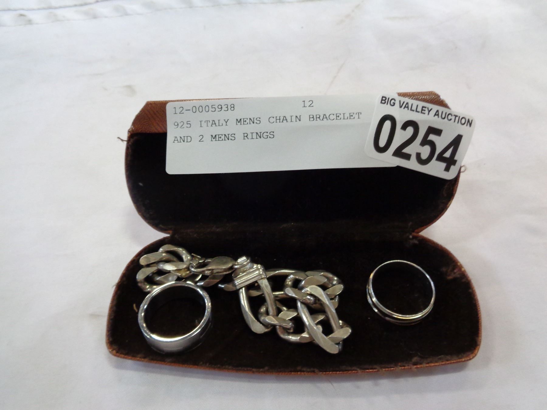 925 ITALY MENS CHAIN BRACELET AND 2 MENS RINGS