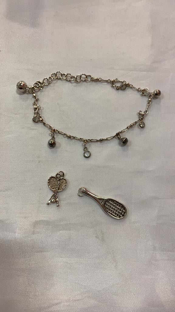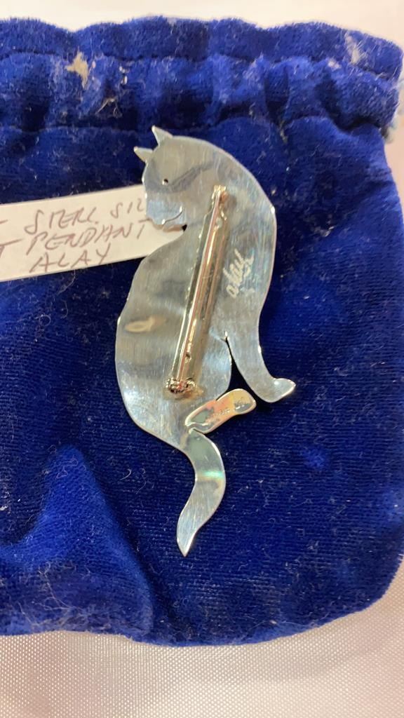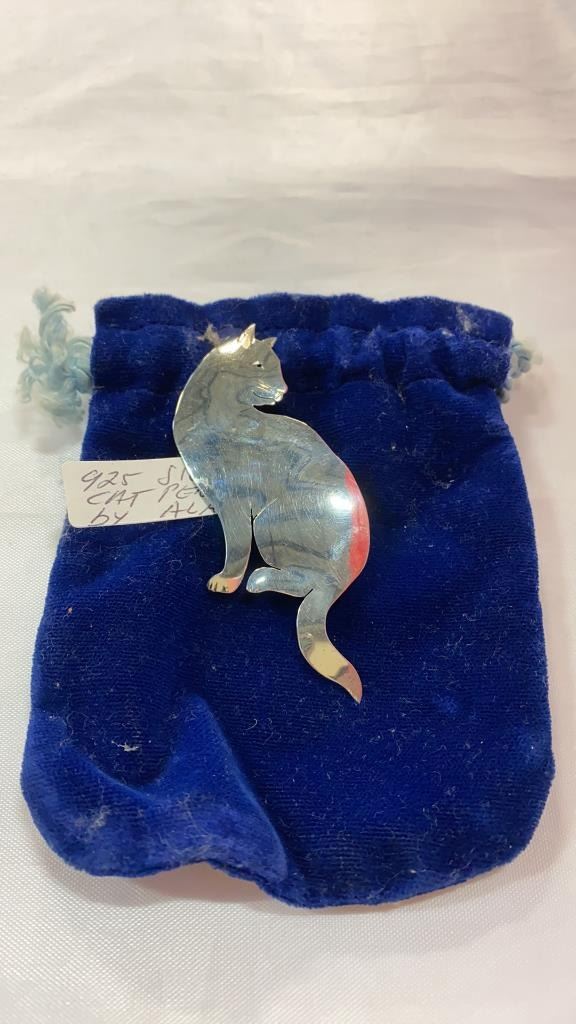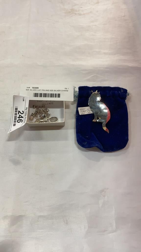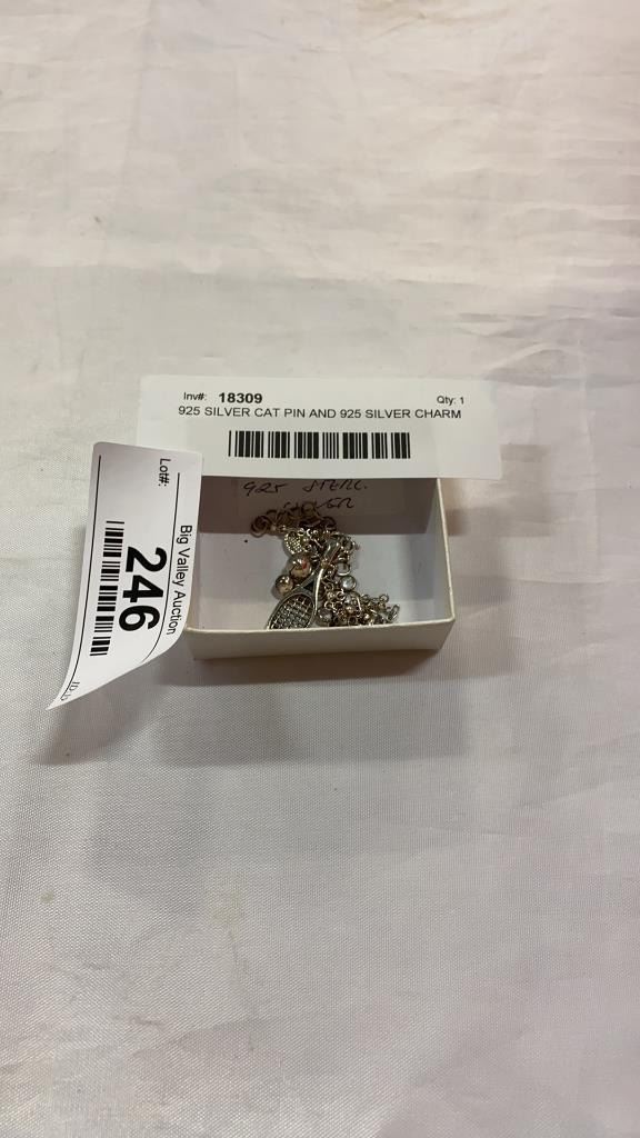 925 SILVER CAT PIN AND 925 SILVER CHARM BRACELET