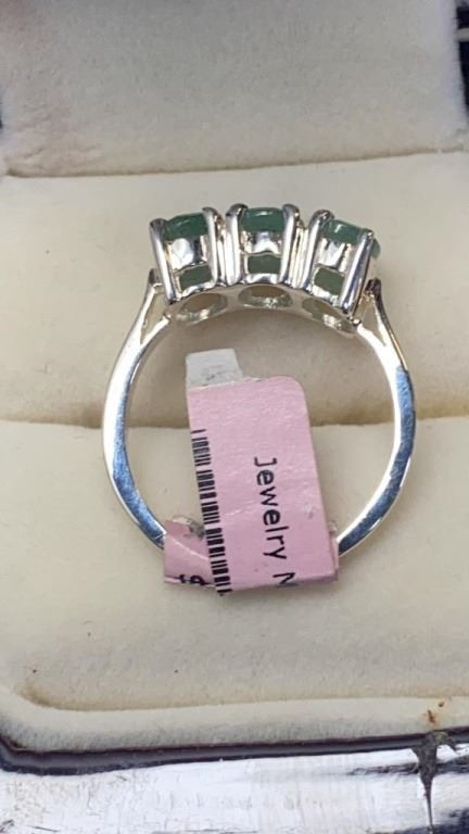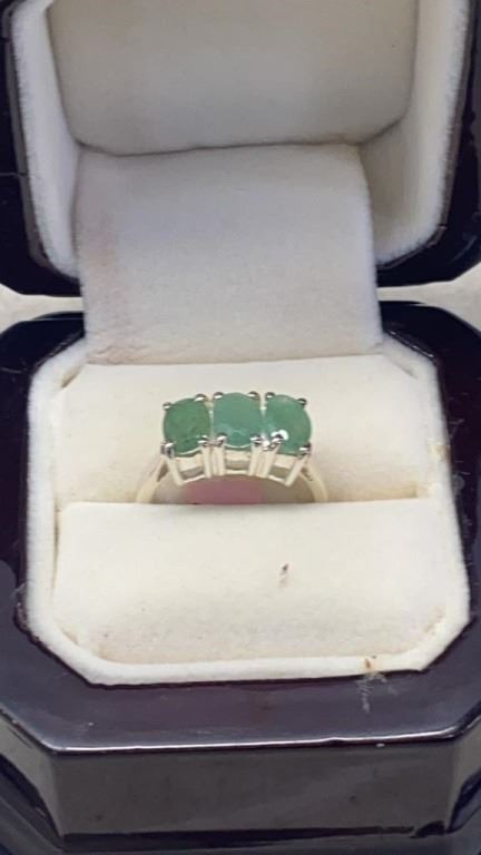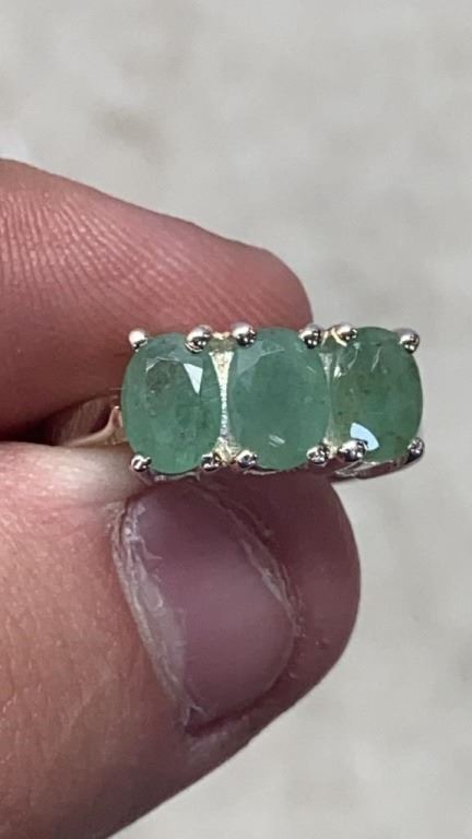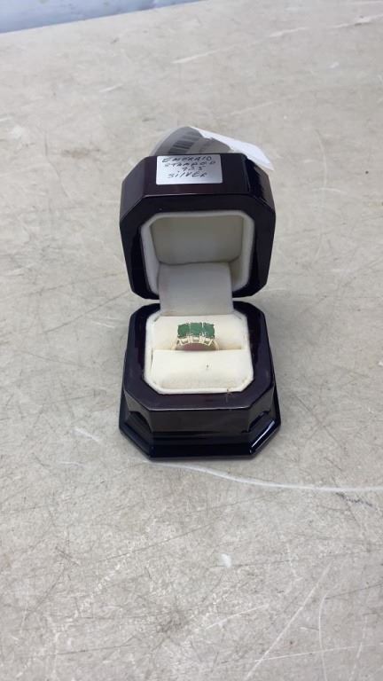 .925 SILVER STAMPED RING SIZE 6.5-7 WITH EMERALD