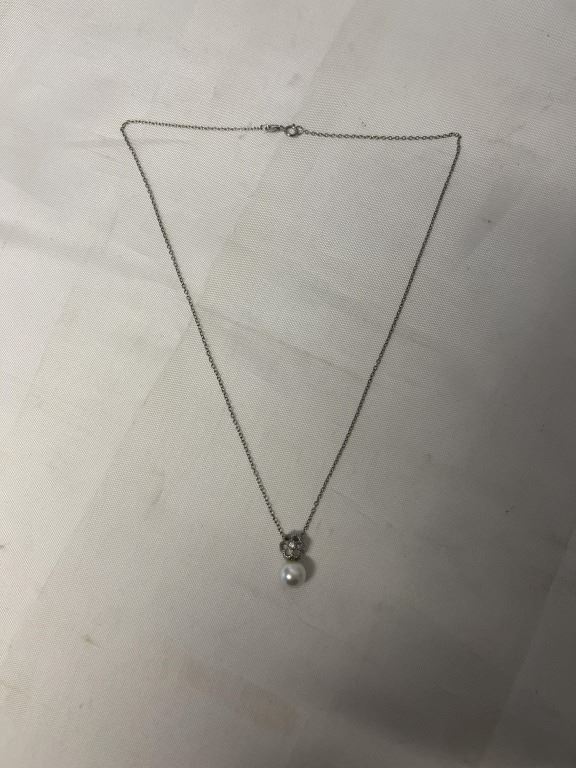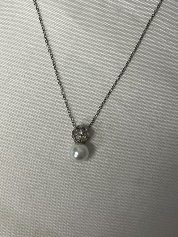 925 STERLING SILVER CHAIN W/ PEARL PENDANT NECKLACE MARKED 925