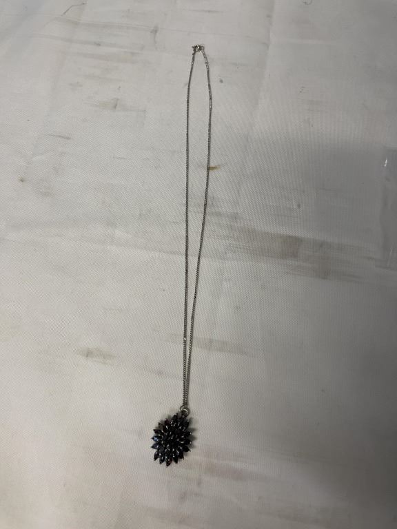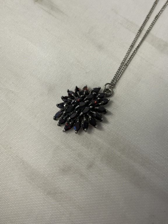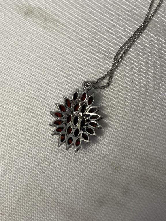 925 STERLING SILVER CHAIN W/ PENDANT W/ LOTS OF MARQUISE CUT GARNET STONES EA MARKED 925