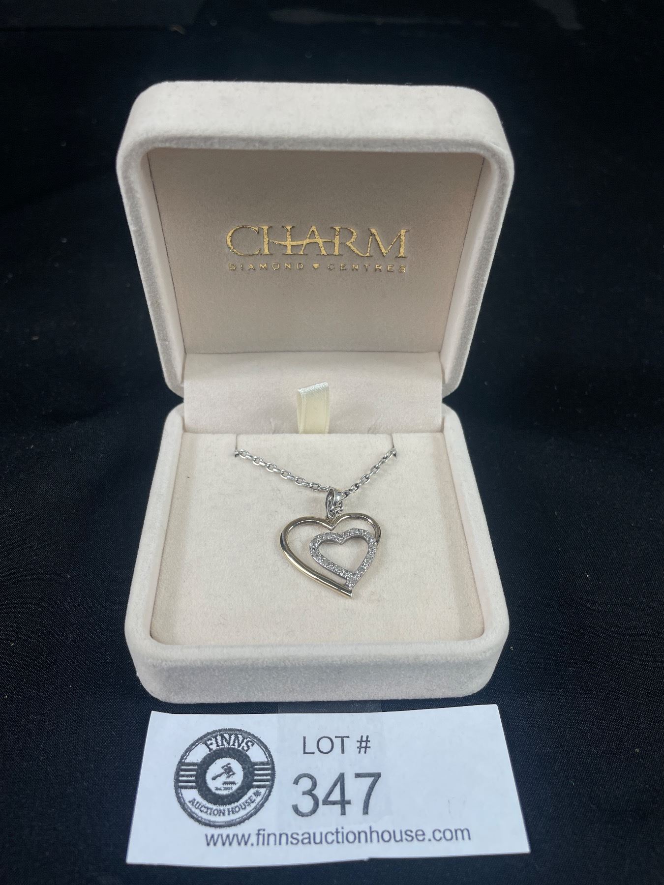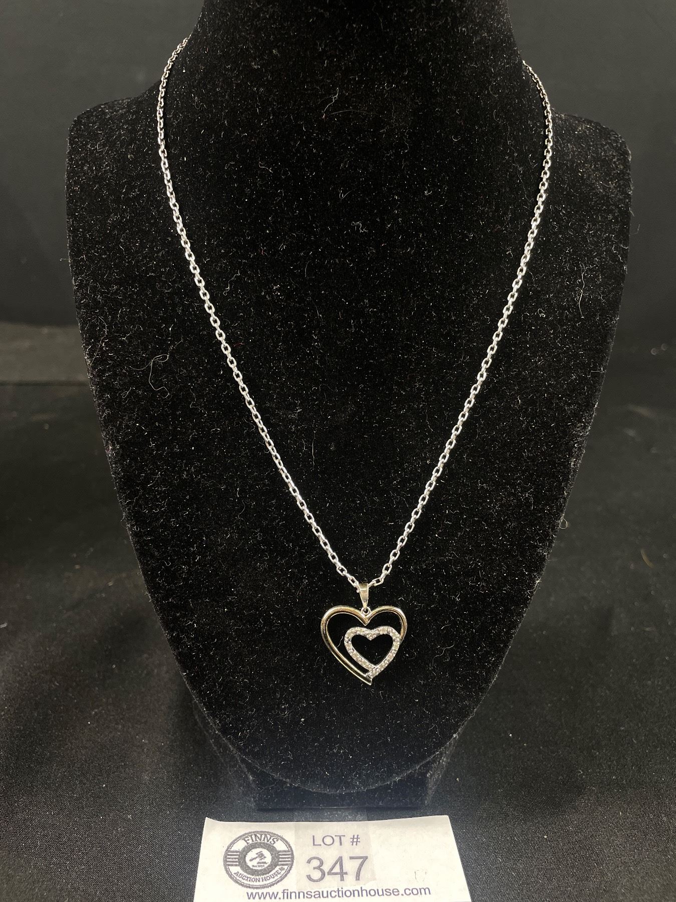 925 Sterling Silver Double Heart Pendant Necklace Set with 12 Diamonds