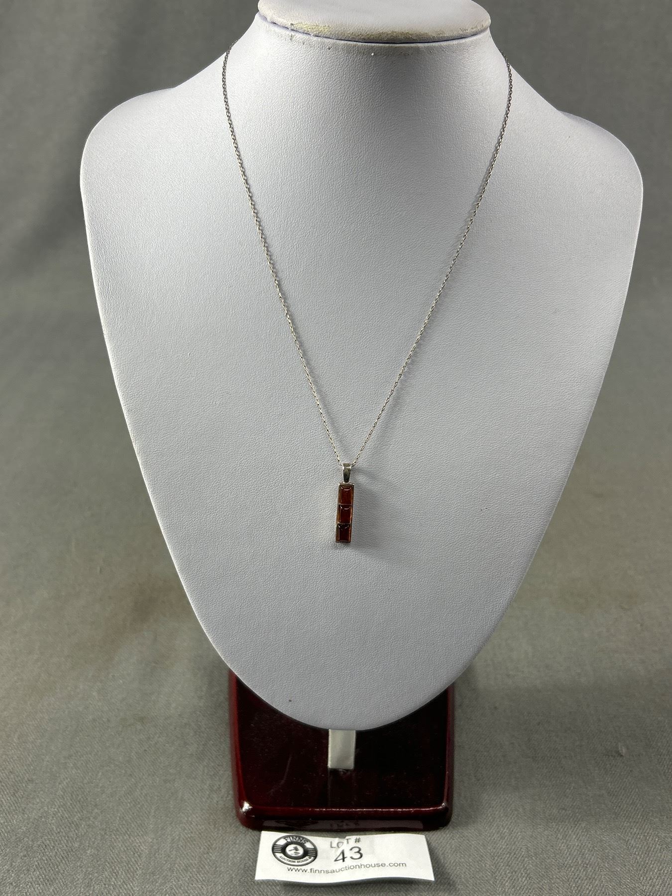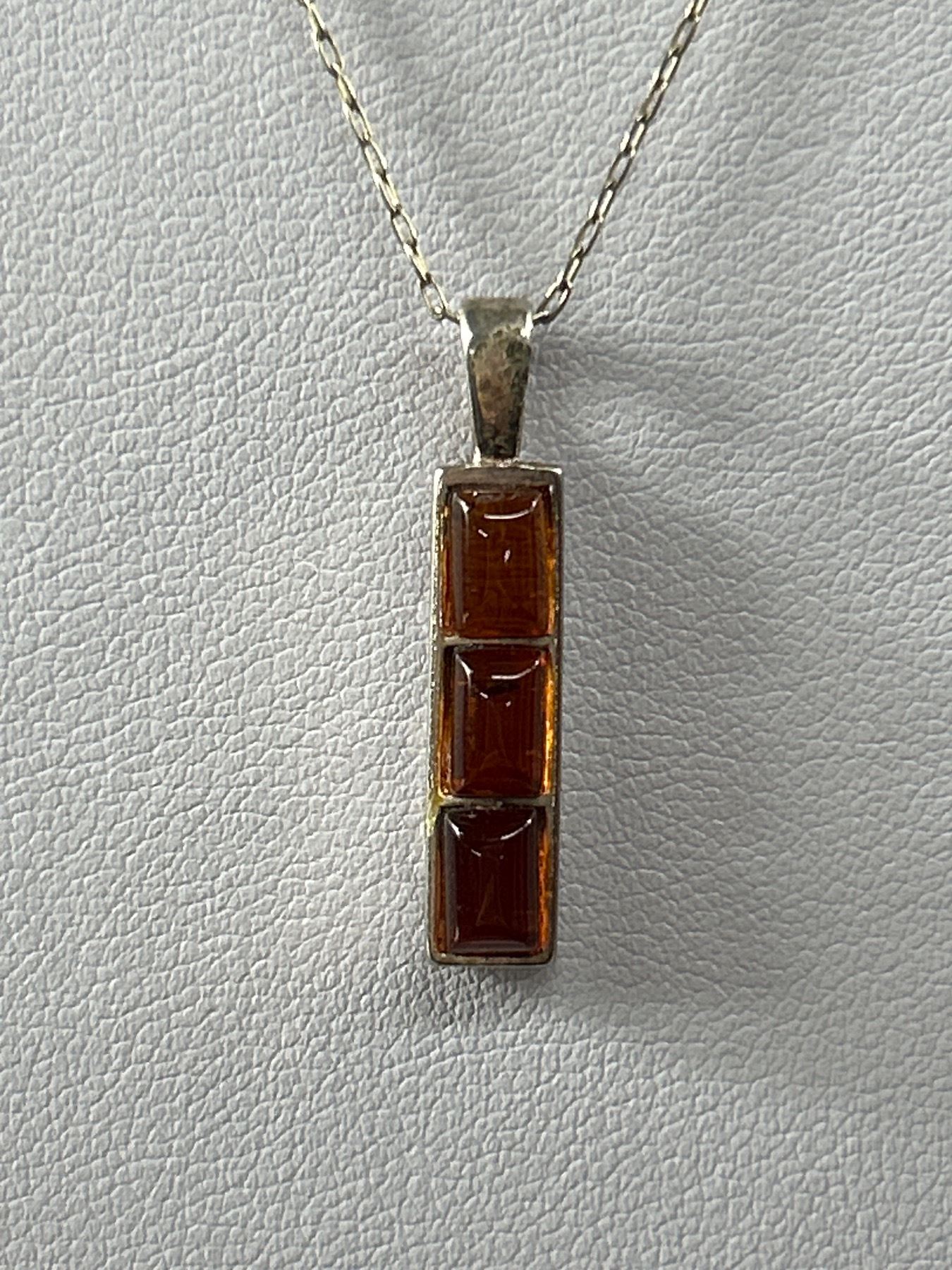 925 Sterling Silver Genuine Amber Pendant w/ Sterling Chain, Vintage