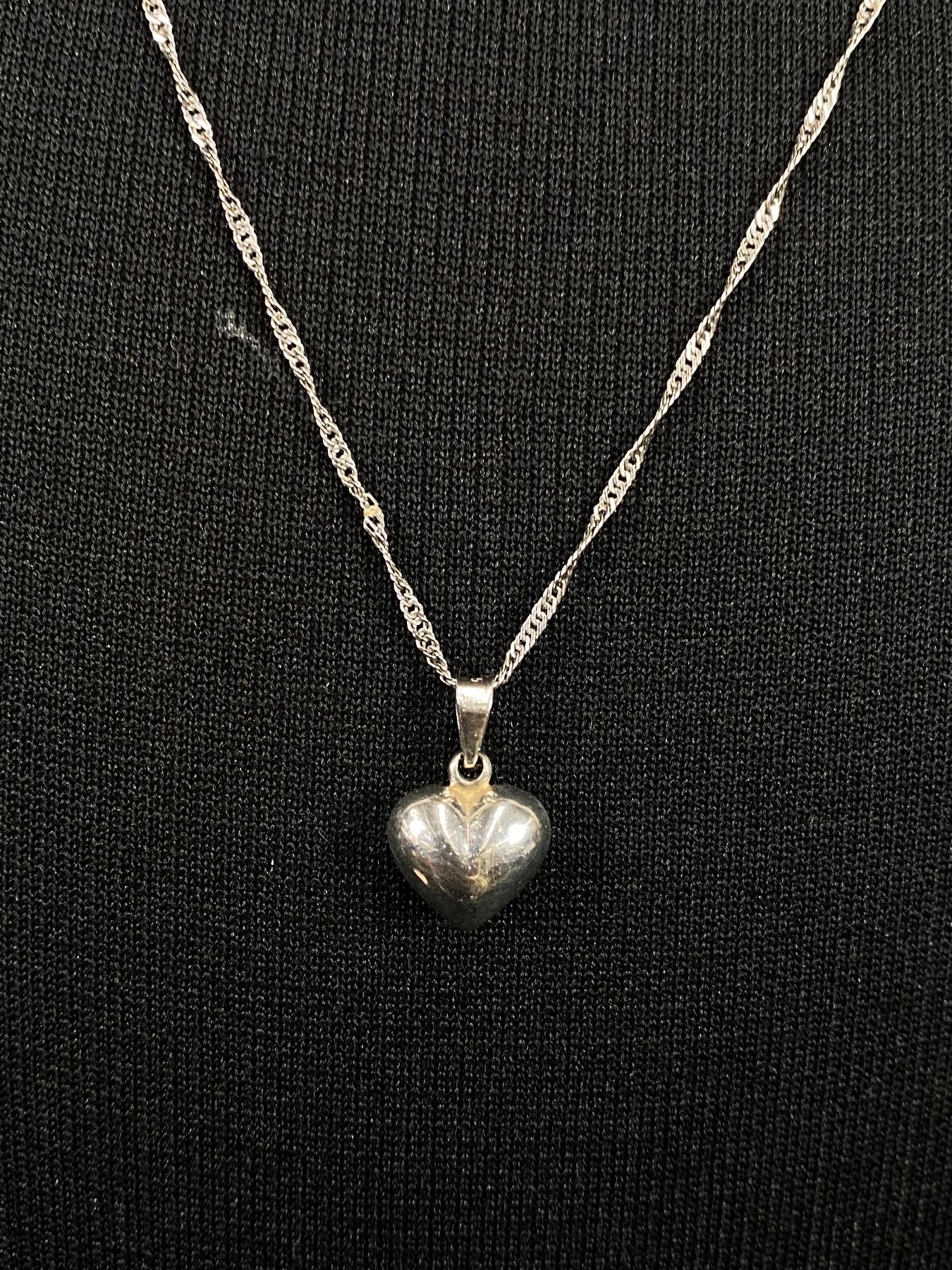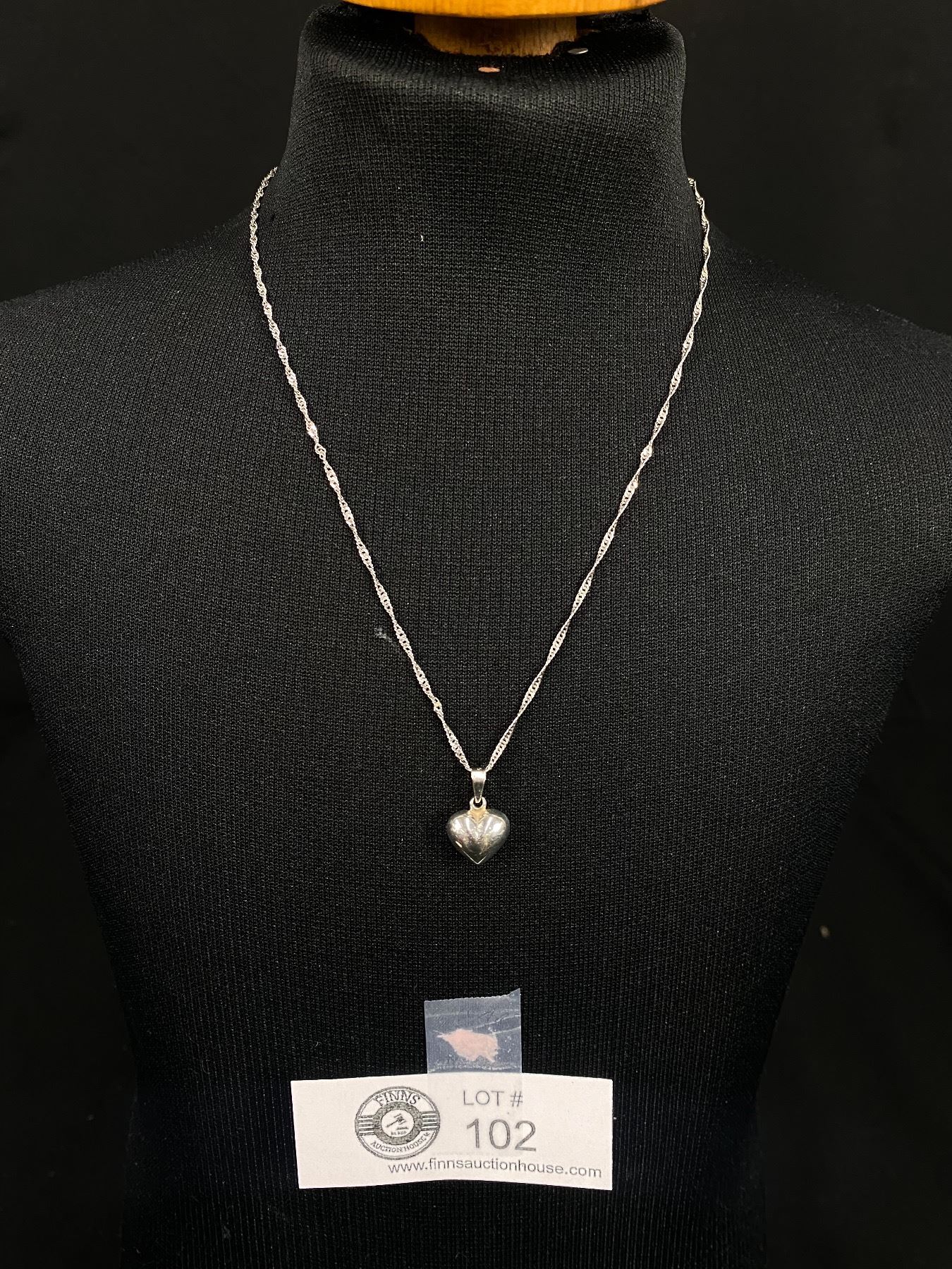 .925 Sterling Silver Heart Pendant with Chain Necklace Italy 16" L