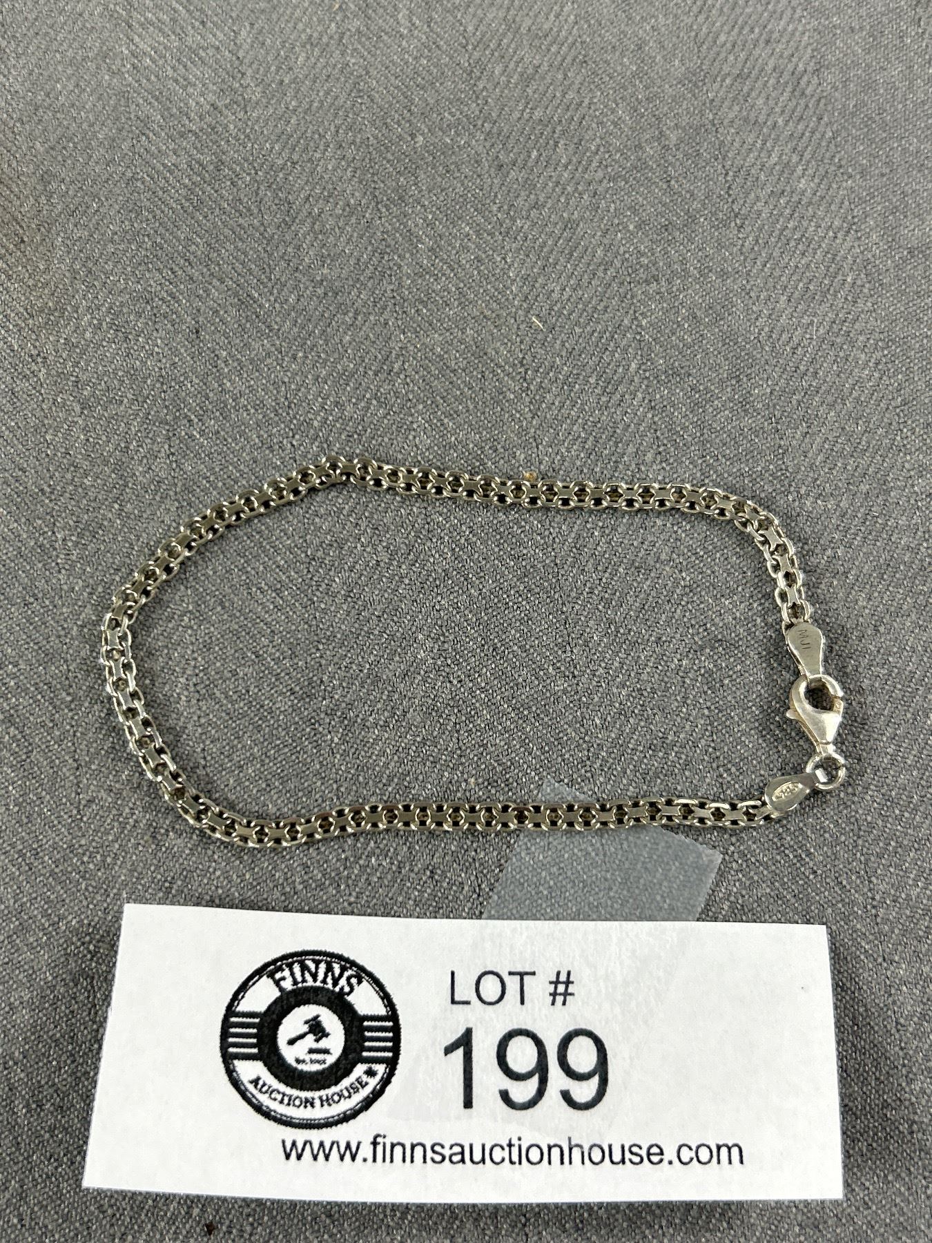 925 Sterling Silver Italy Chain Link Bracelet 7" Long, Hand Polished