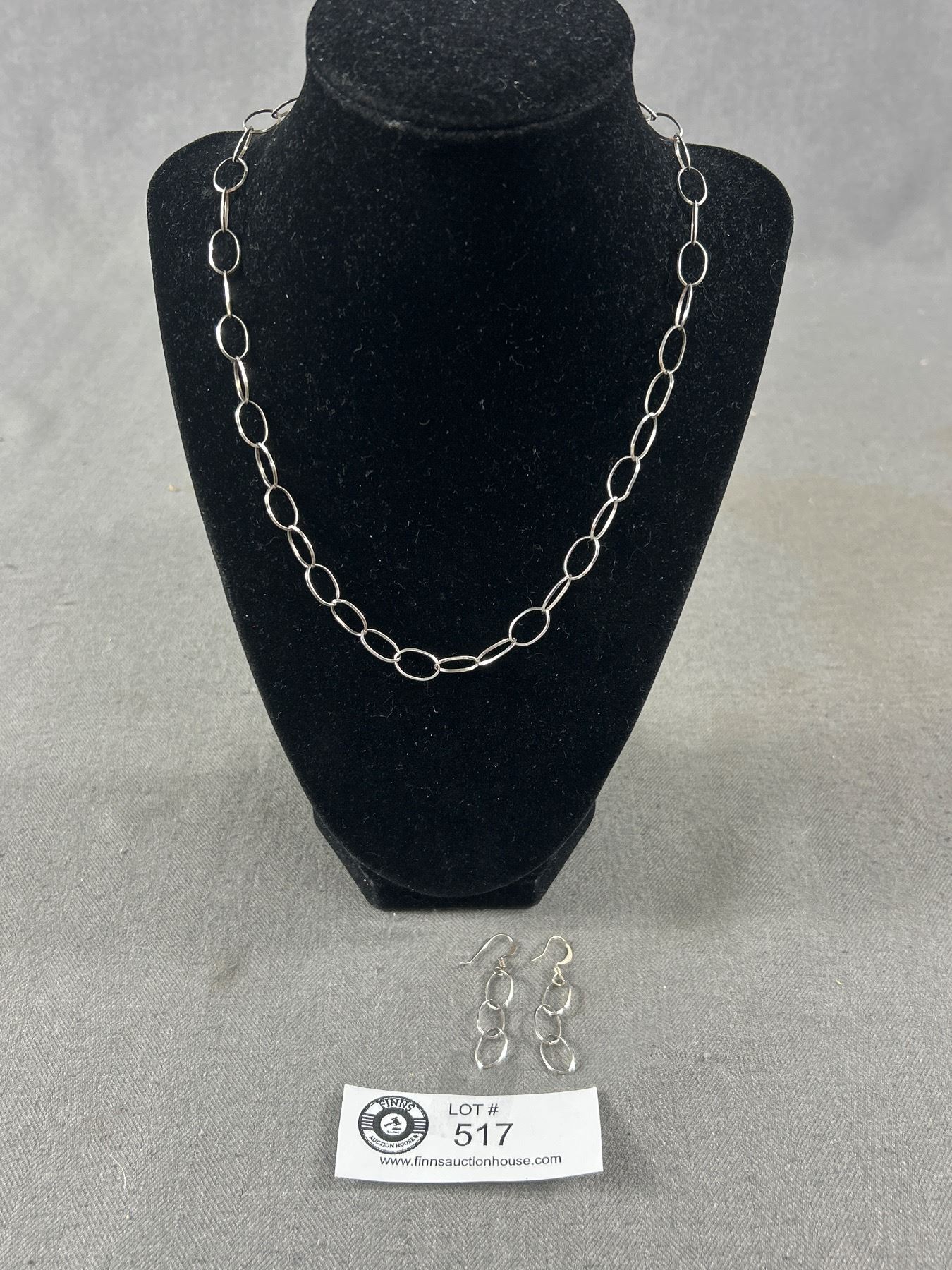 925 Sterling Silver Links Necklace & Matching Earrings Set