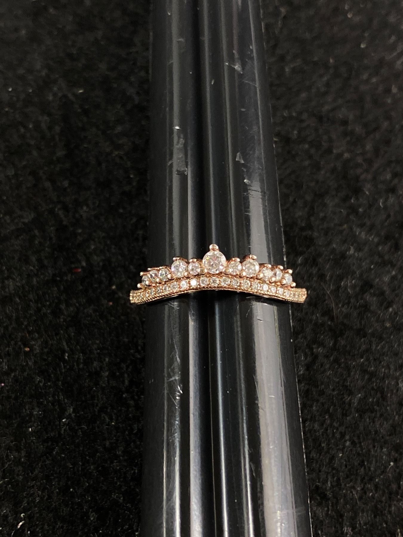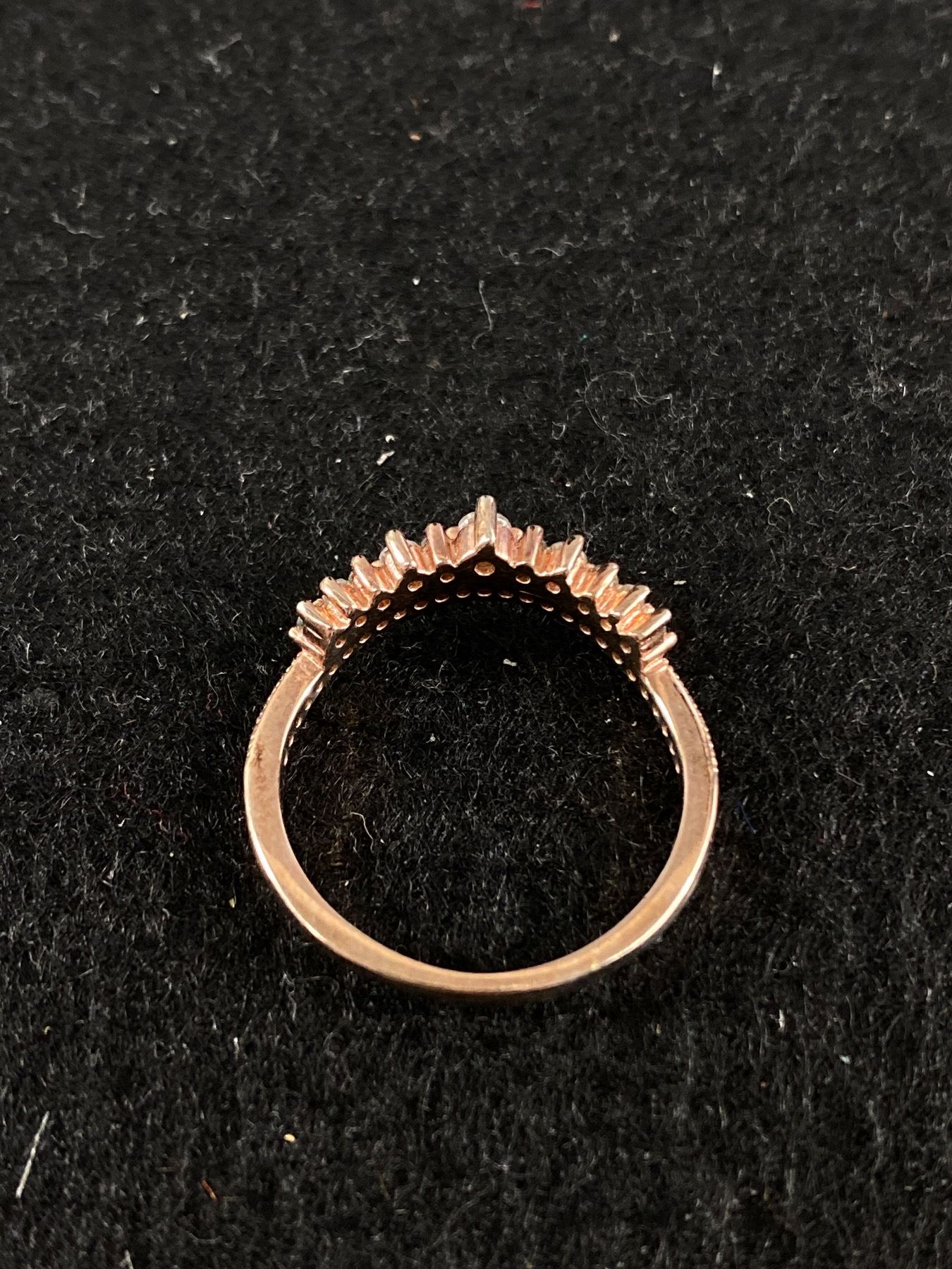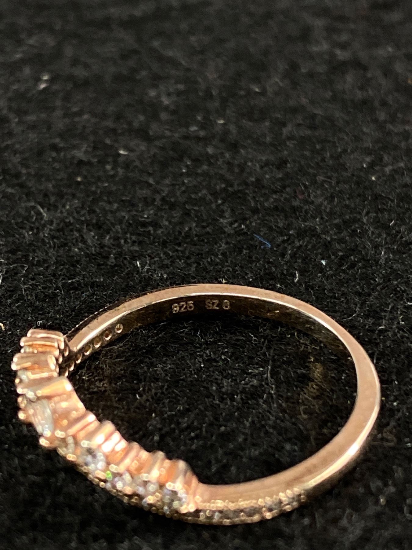 925 Sterling Silver Prong Set Rose Gold Overlay Clear Colour Stones - Marked Size 8, 925