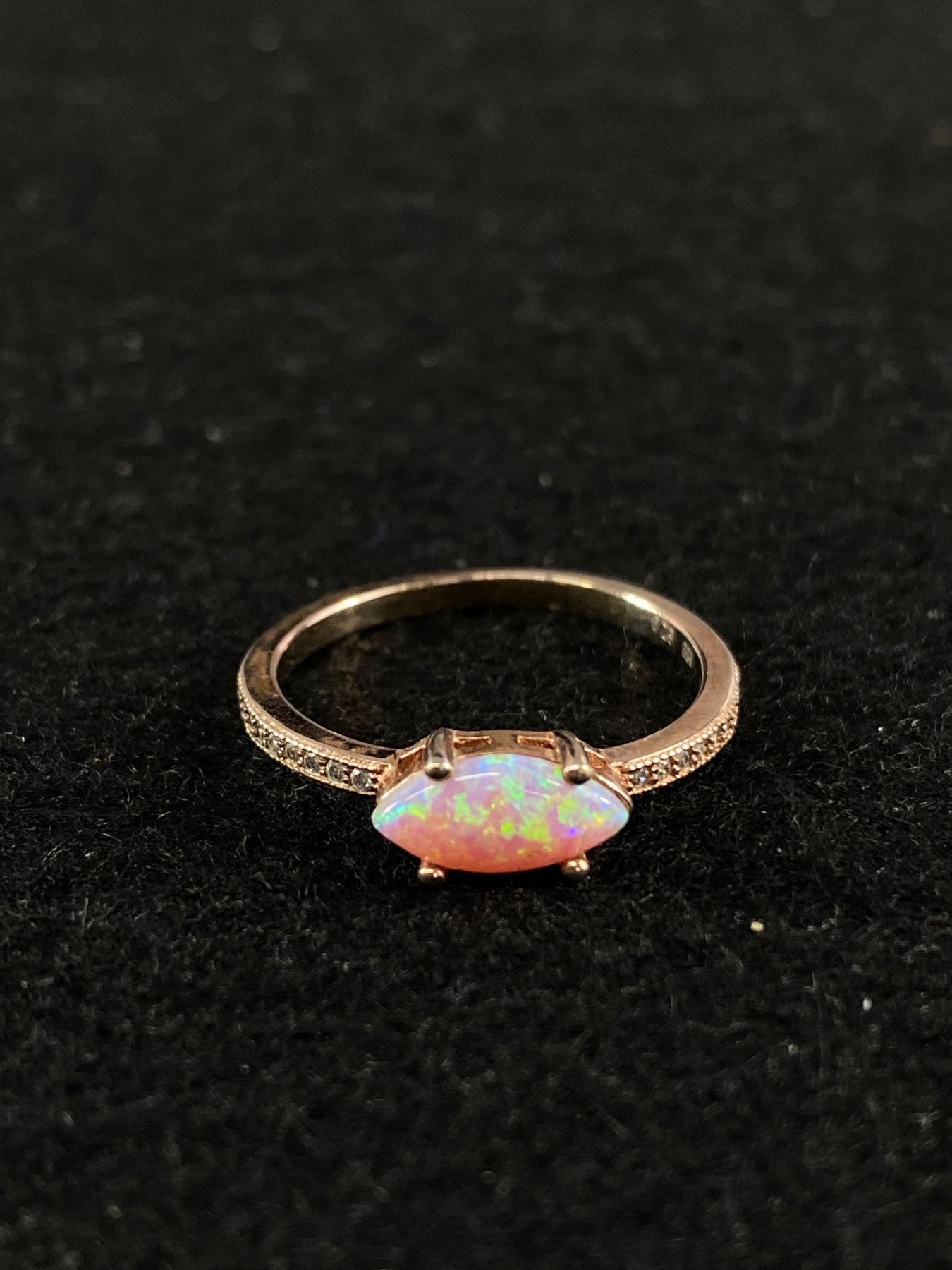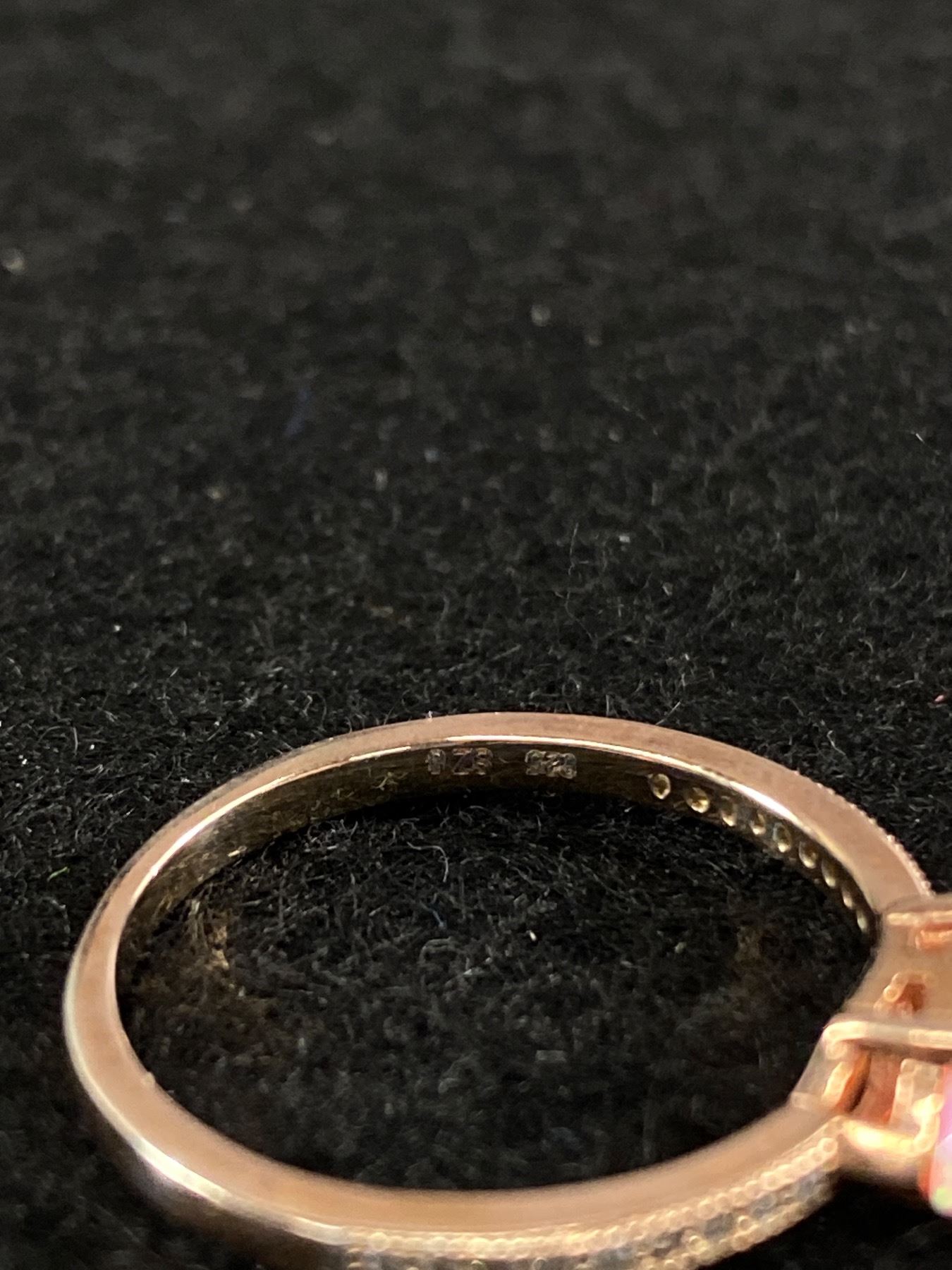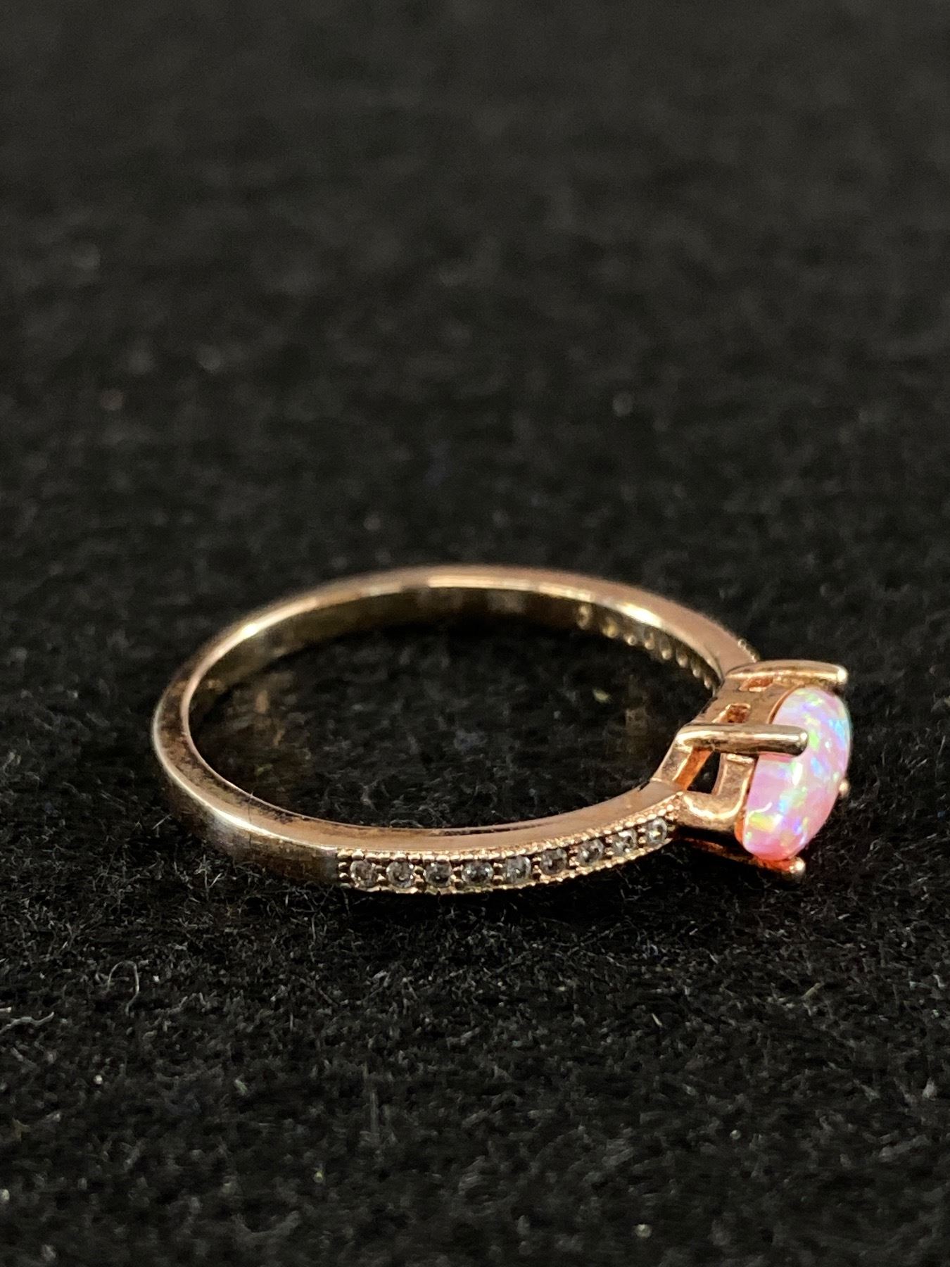 925 Sterling Silver Prong Set Rose Gold Overlay Opal & Clear Colour Stones - Marked Size 8, 925