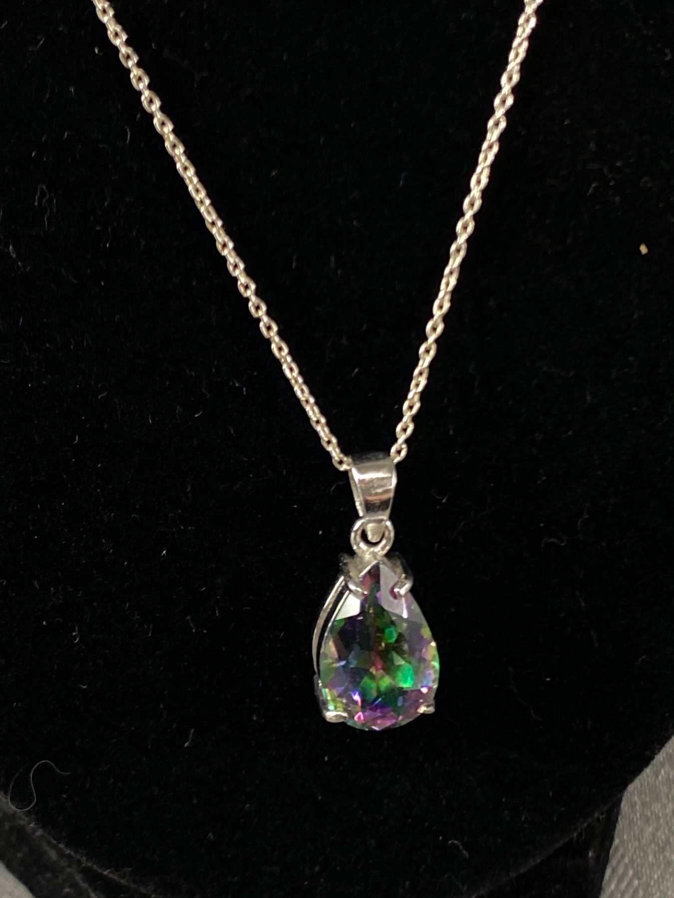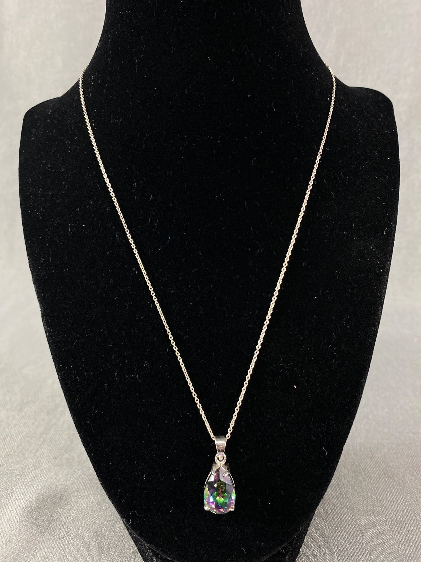 925 Sterling Silver & Sparkly Mystic Topaz Teardrop 19" Necklace - Tested