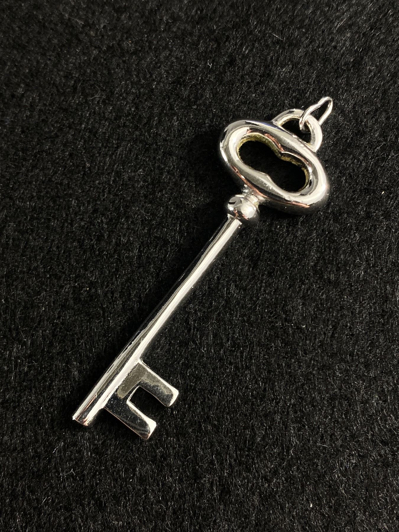 925 Sterling Silver (Tested) Large Key Design Pendant 2.25" Length