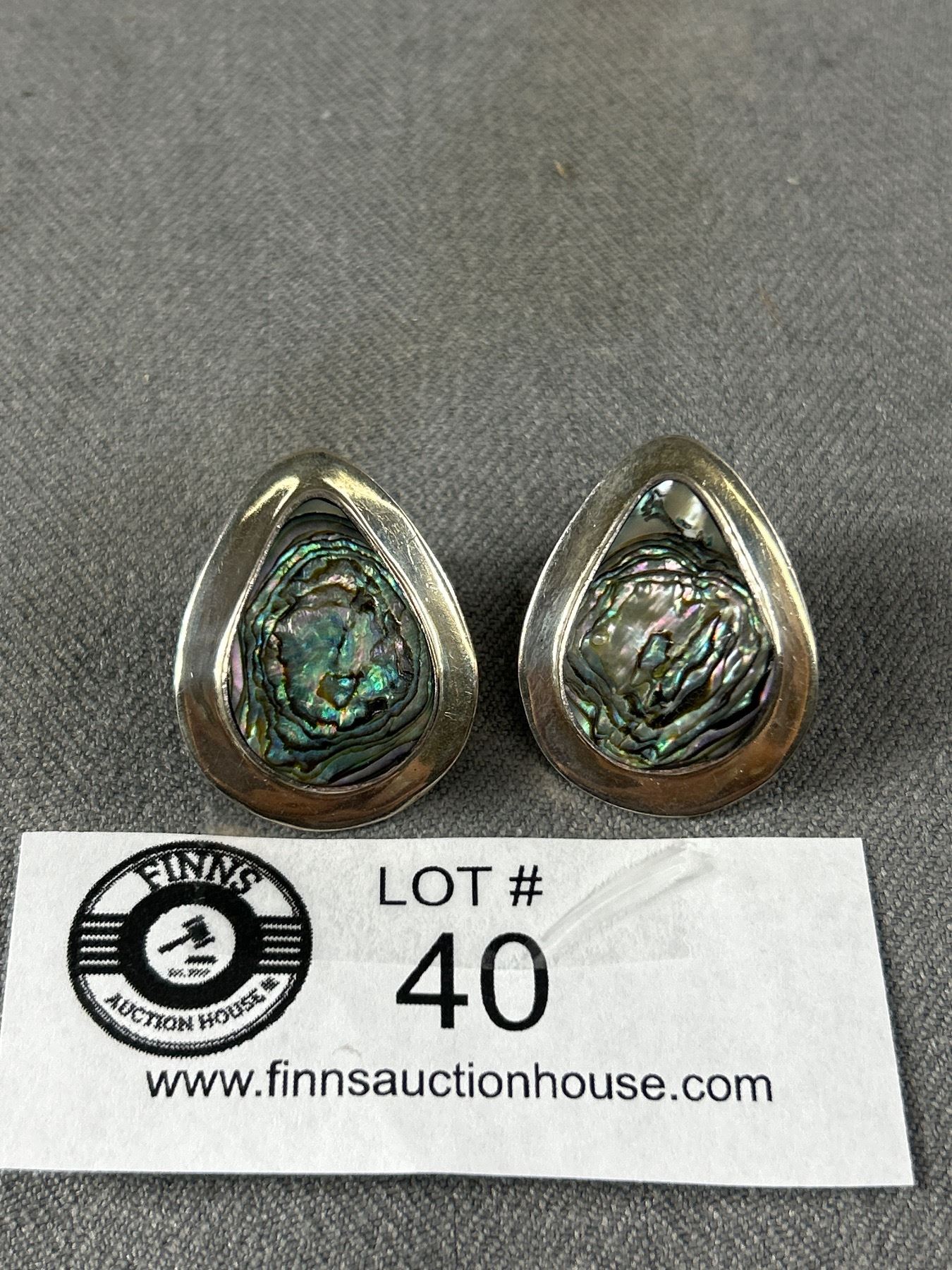 925 Sterling Silver, Vintage, Large Abalone Earrings