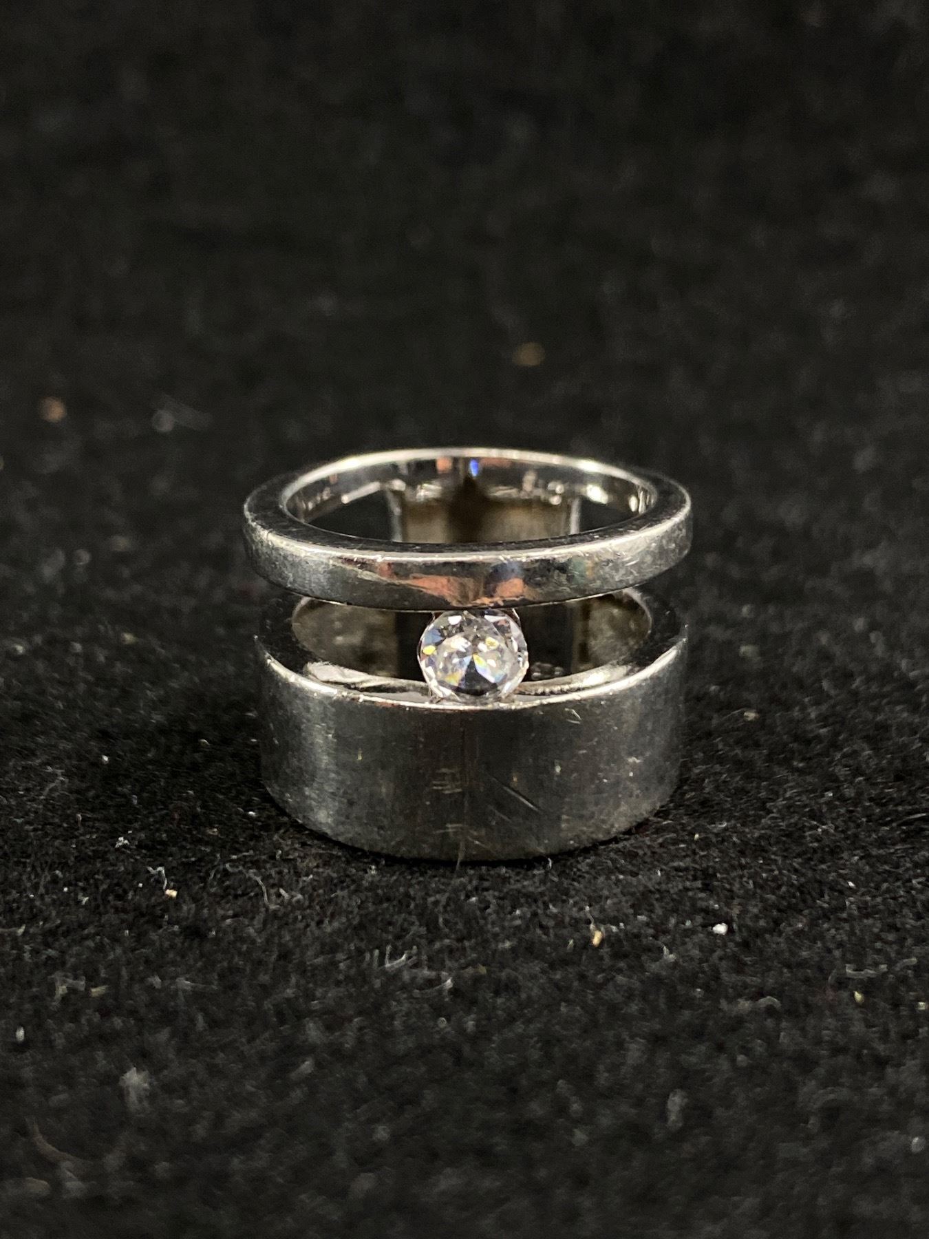 925 Sterling Silver Wide Ring Band. Signed with Stone
