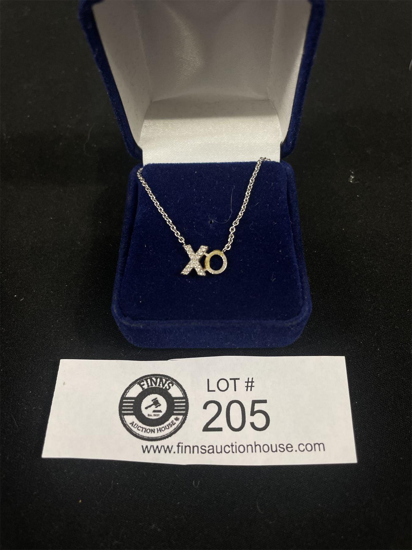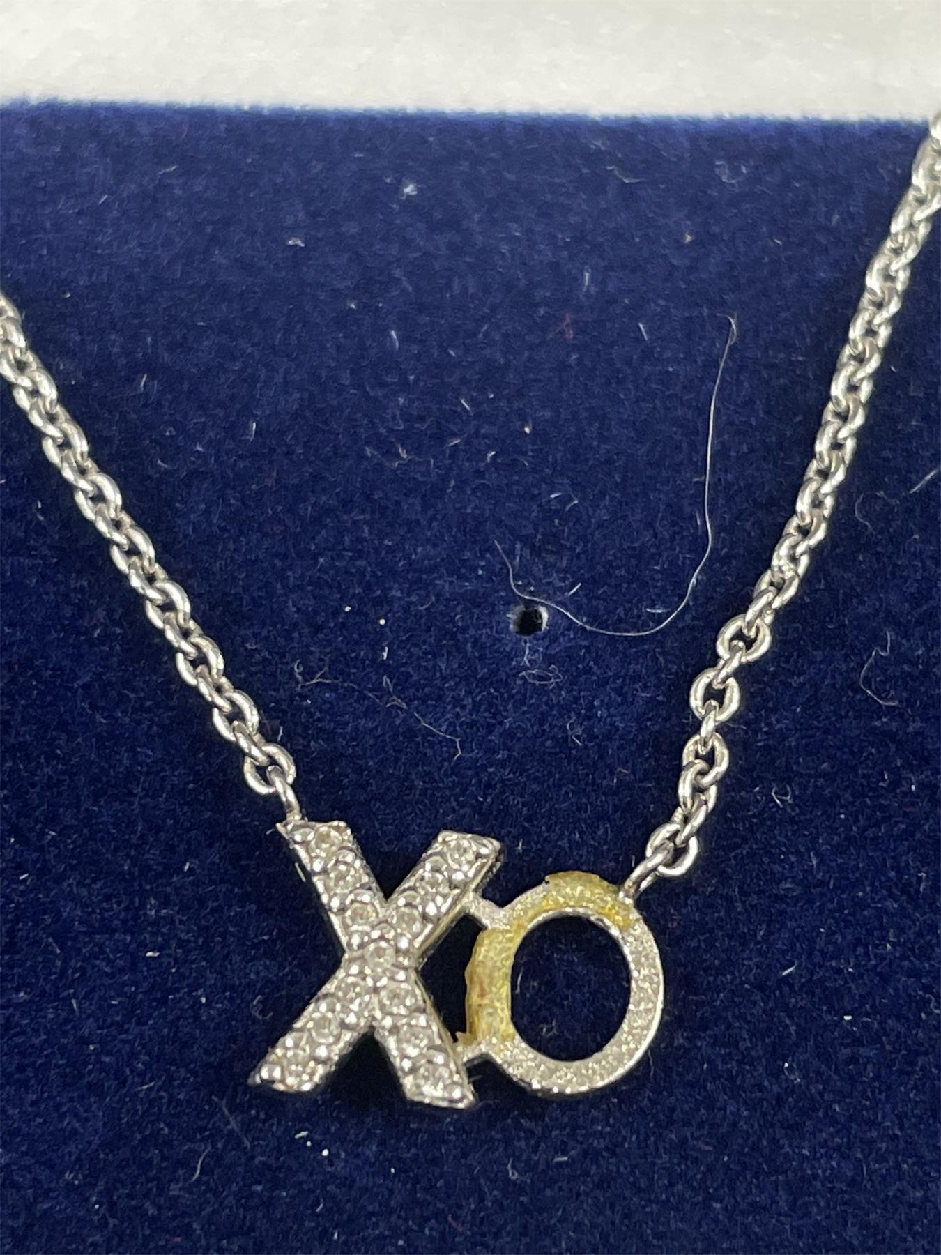 925 Sterling Silver XO Necklace w/ Tiny Clear Stones 16-18 inches
