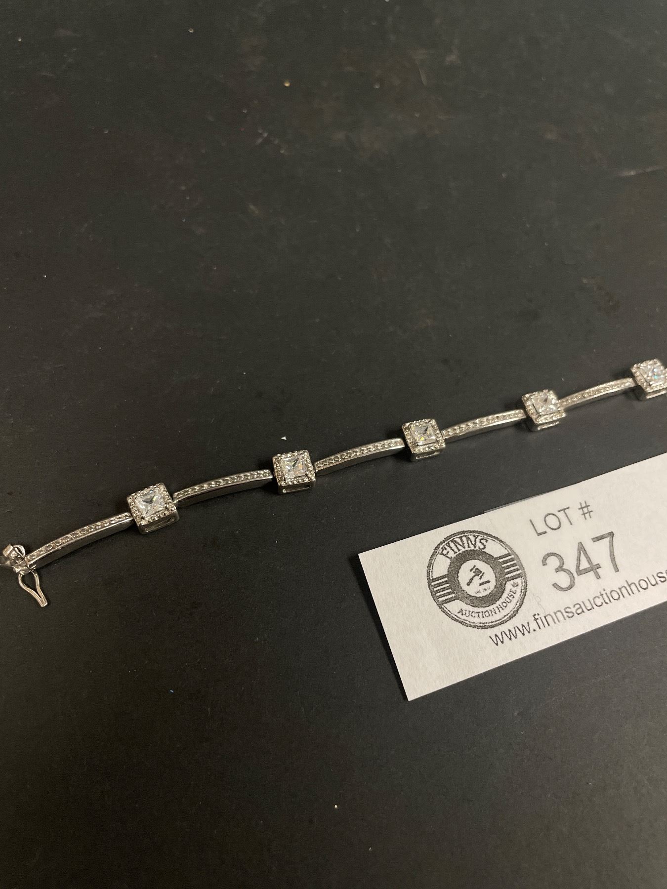 .925 Sterling Silver with 6 Cubic Zirconia Stones Bracelet (Clasp Damaged)