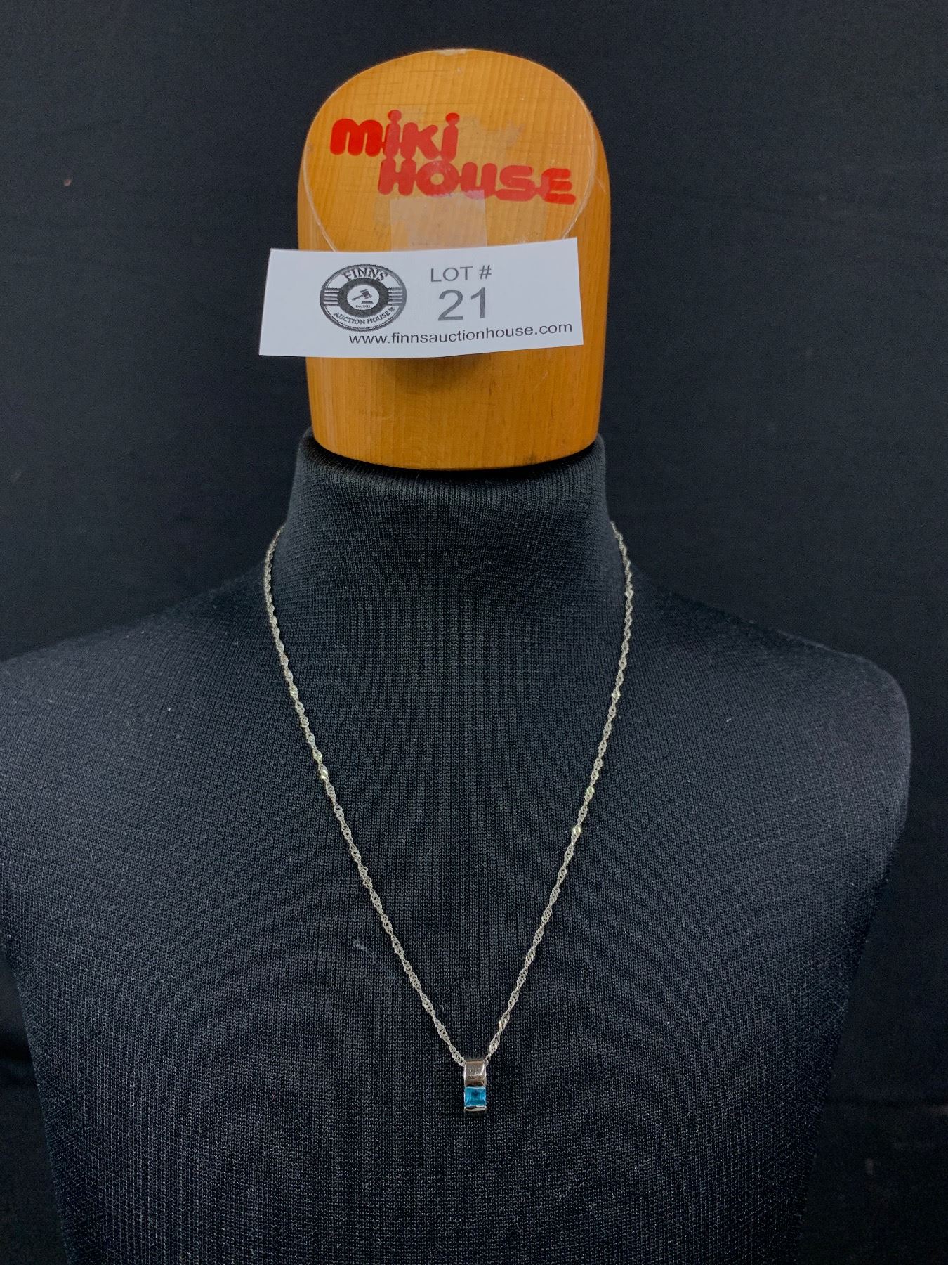 925 Sterling Silver with Blue Topaz Pendant Necklace