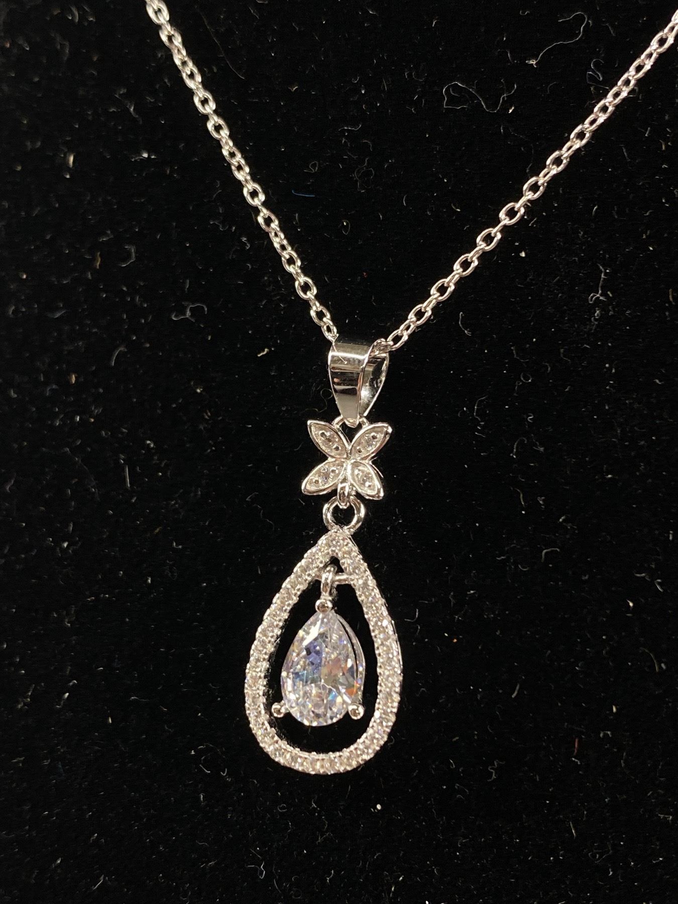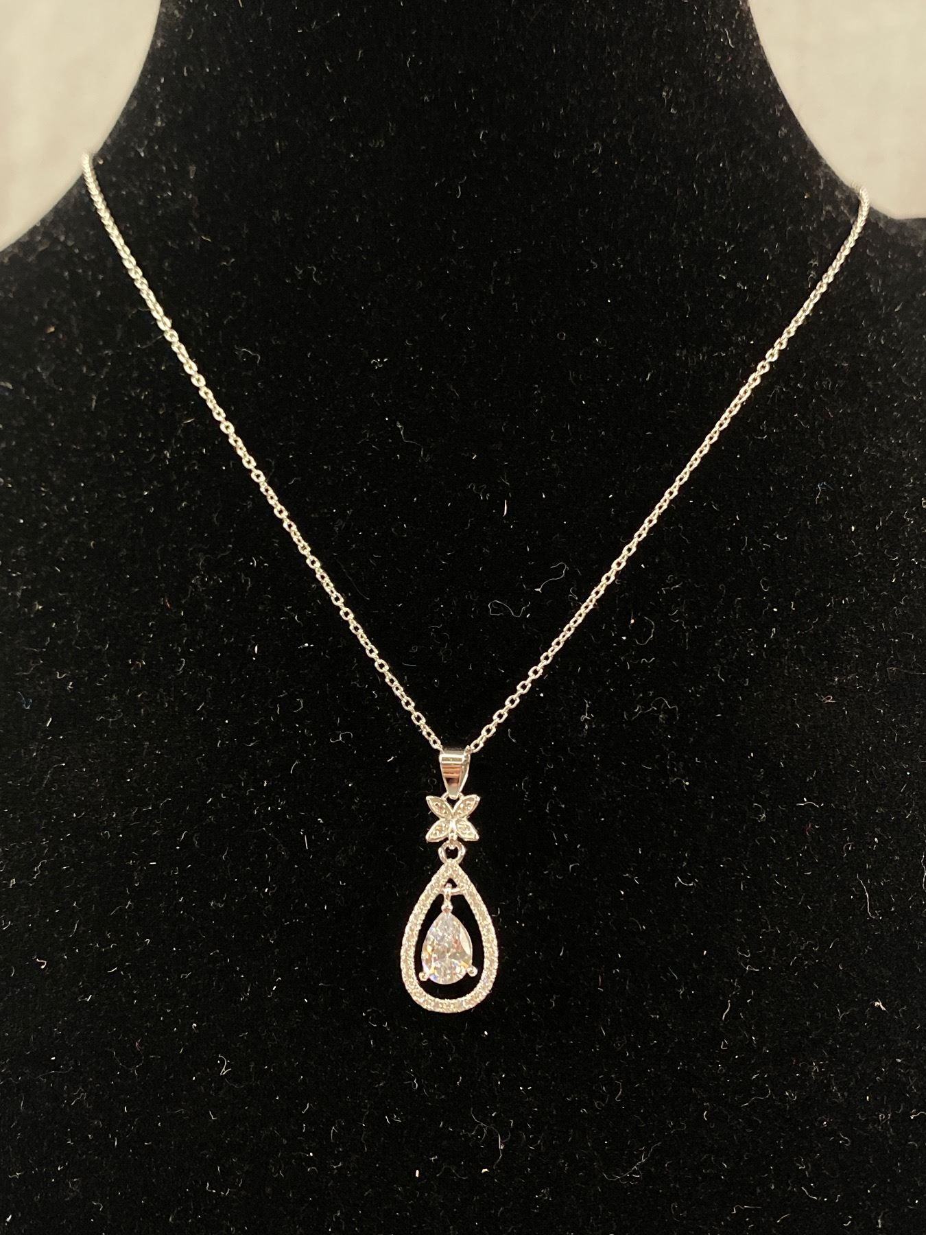 925 Teardrop Pear Necklace Pendant 18" + 2" Extender - Marked 925 - Beautiful New Necklace