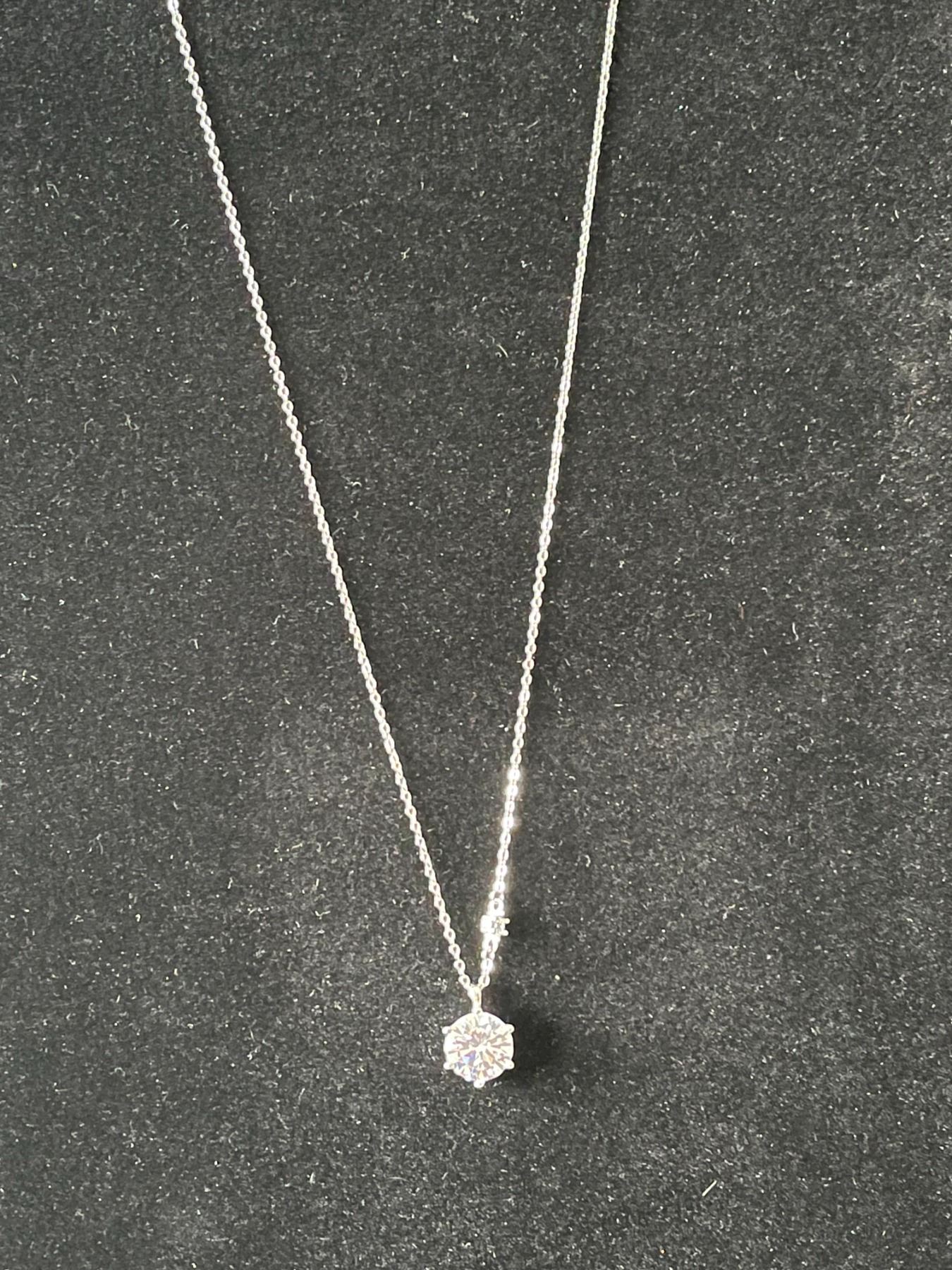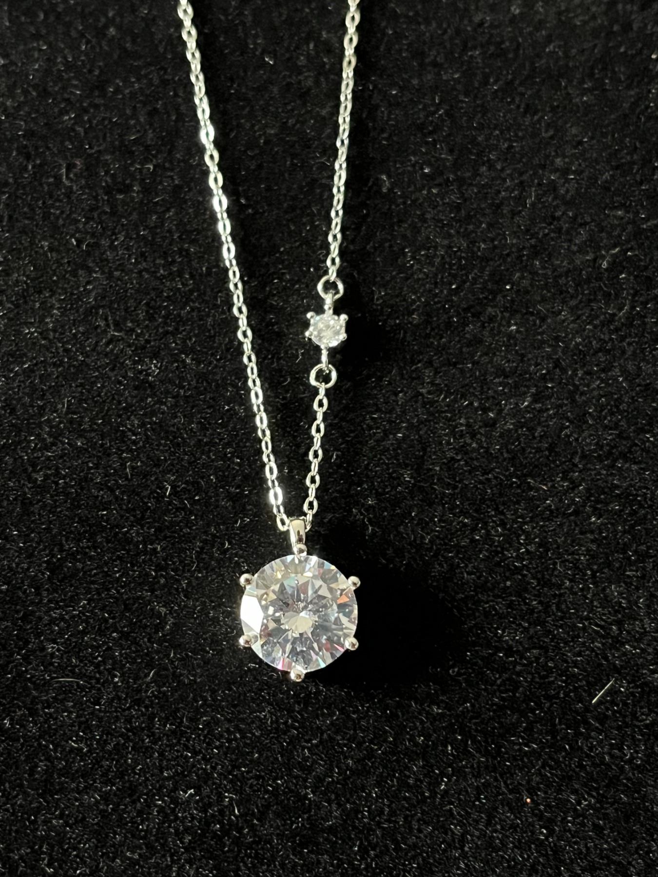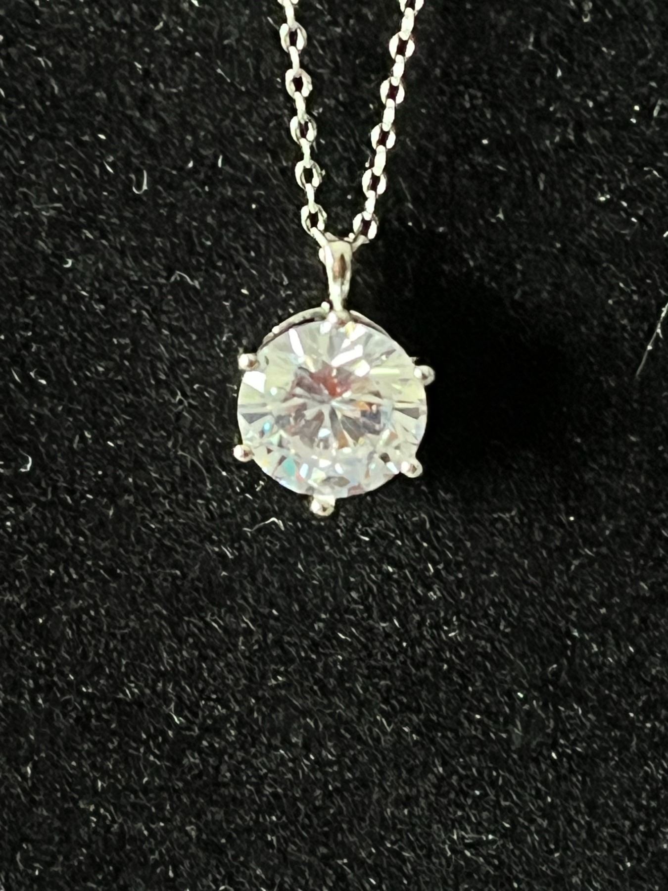 925S 4.0 CARAT LAB-CREATED WHITE SAPPHIRE SOLITAIRE NECKLACE, MOUNTED IN 925 STERLING SILVER WITH WHITE GOLD OVERLAY - ADJUSTABLE 16" - 18" LONG