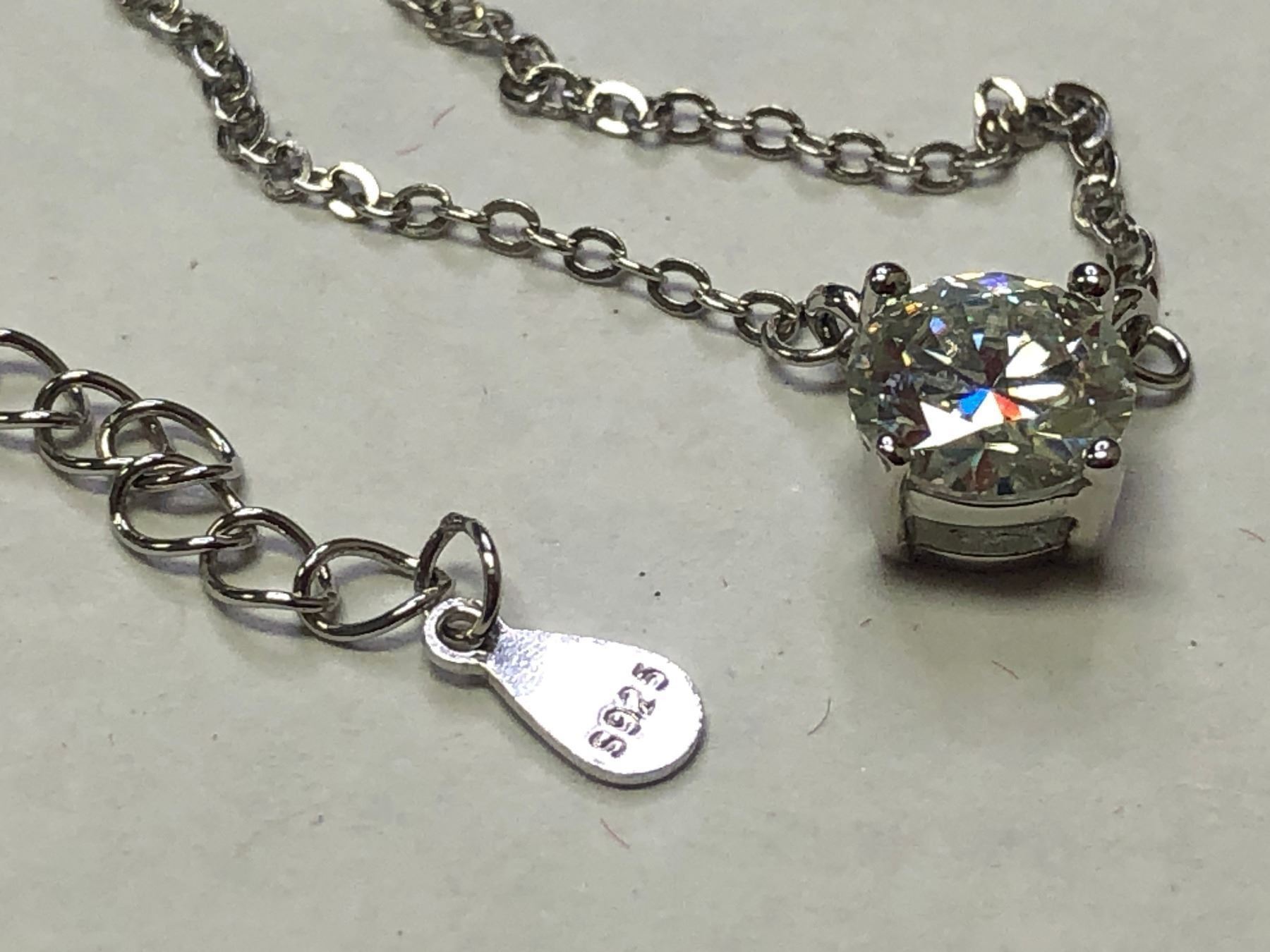 $940 Very Light Blue Moissanite (1.0ct) Sterling Silver combination cast & assembled pendant & chain- Art Auction art auction