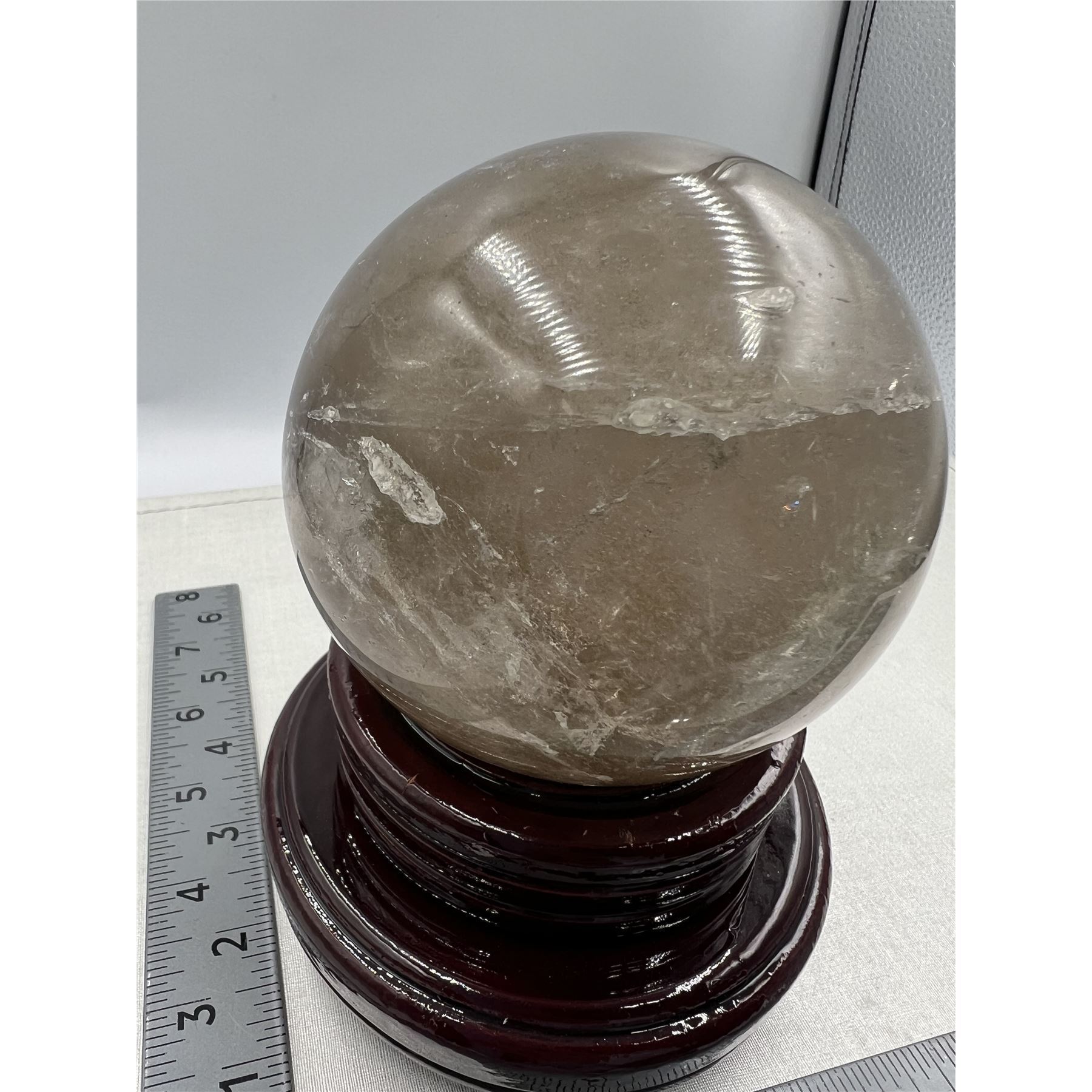 95.0 MM SMOKY QUARTZ SPHERE WITH INCULSION HIGH GRADE .