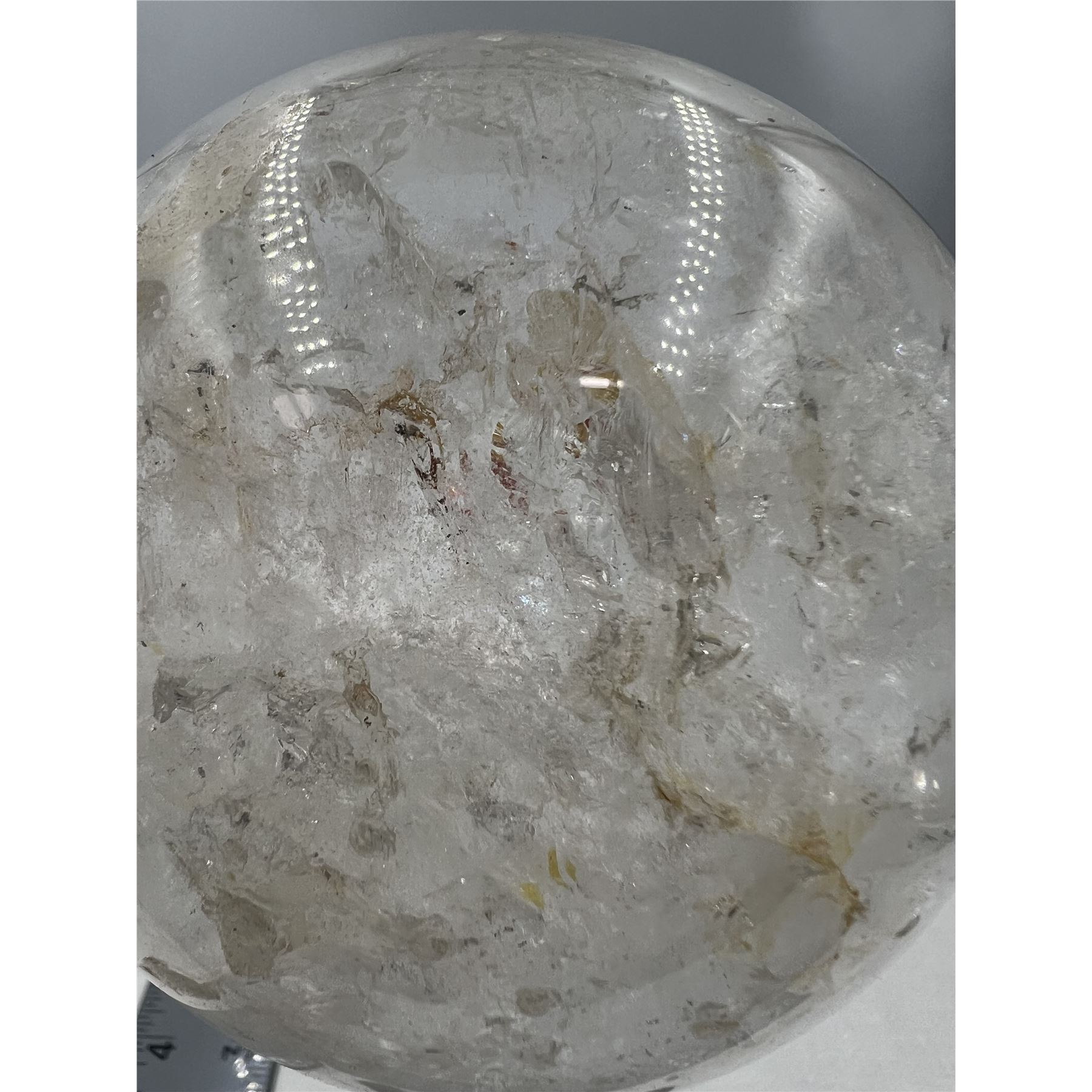 99.0 MM LARGE CLEAR QUARTZ SPHERE WITH YELLOW HEALER.