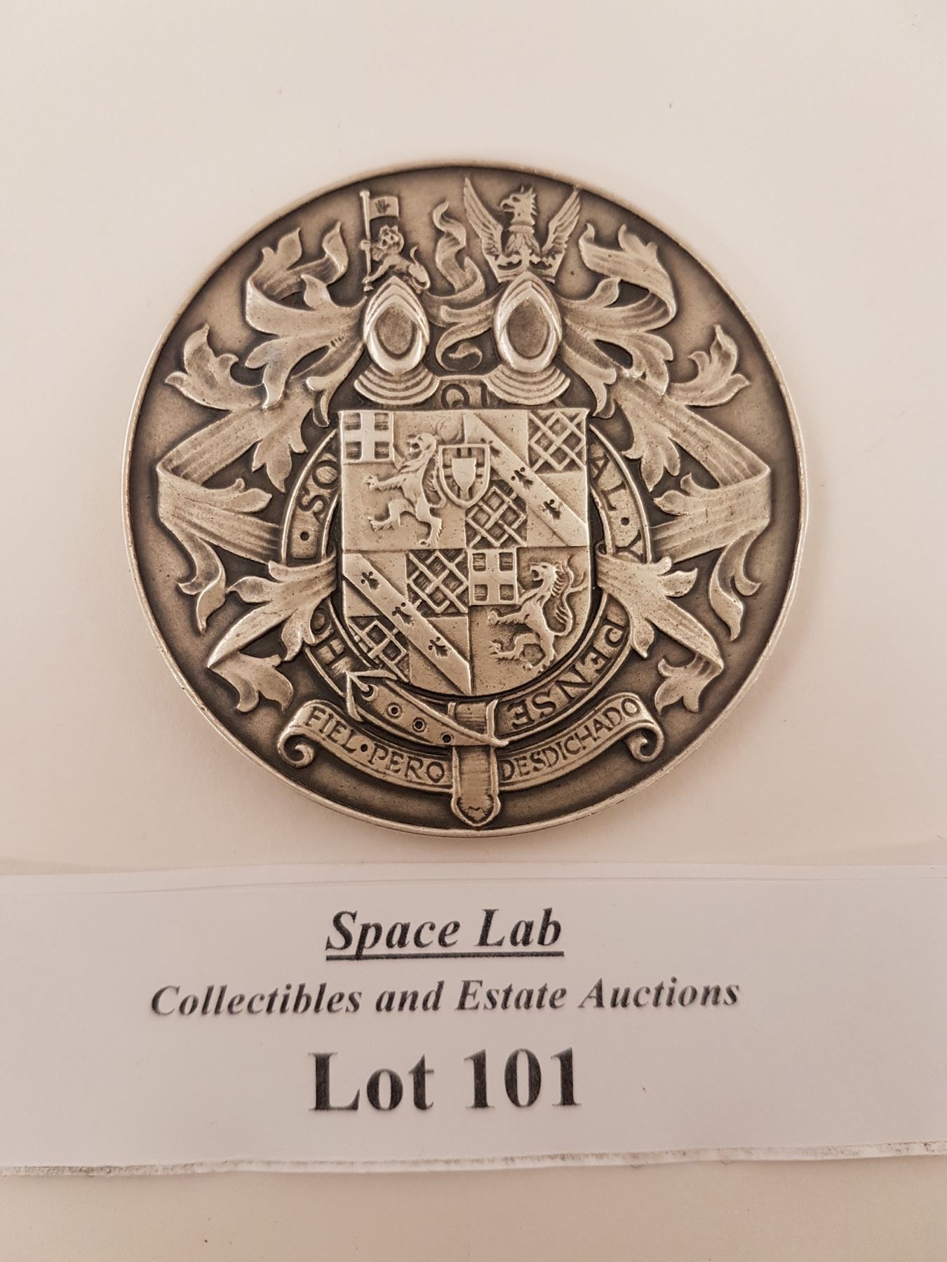 This important portrait piece, by the designer of the Churchill Crown, is the artist's definitive medallic portrait of Churchill. Its vital style conveys the same energy as the artist's other Churchill works; the siren-suited bust at Windsor, the statue in the House of Commons, and the commemorative crown. The artist prepared several models before the final model was complete in 1969.