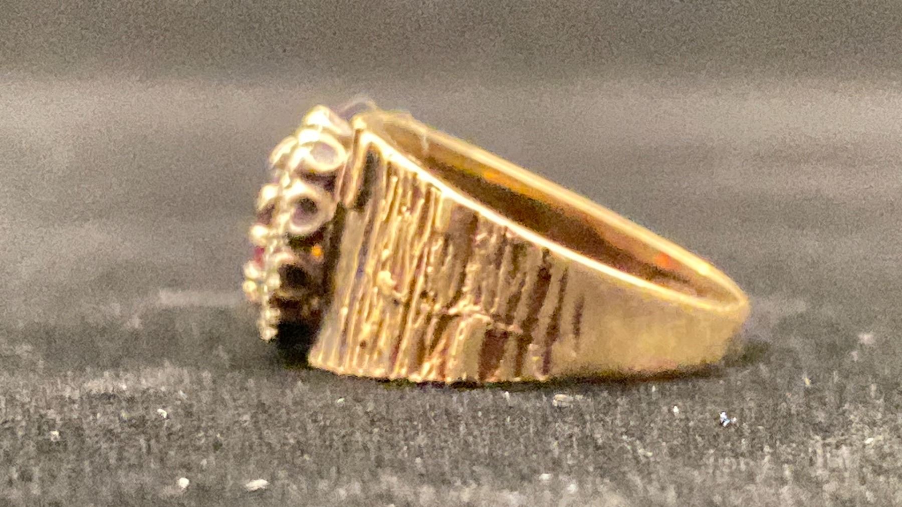 9K LADIES RING SET WITH GARNET AND WHITE STONES (4.1G)