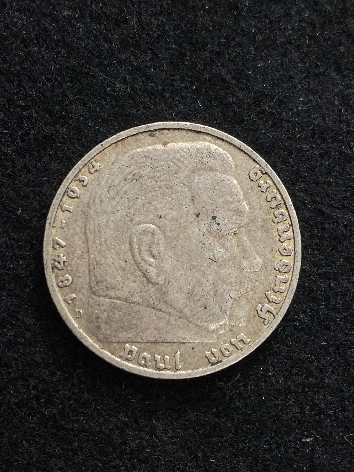 A 900 Silver 1936 3 Reich 5 Mark Coin (Good Conditon)