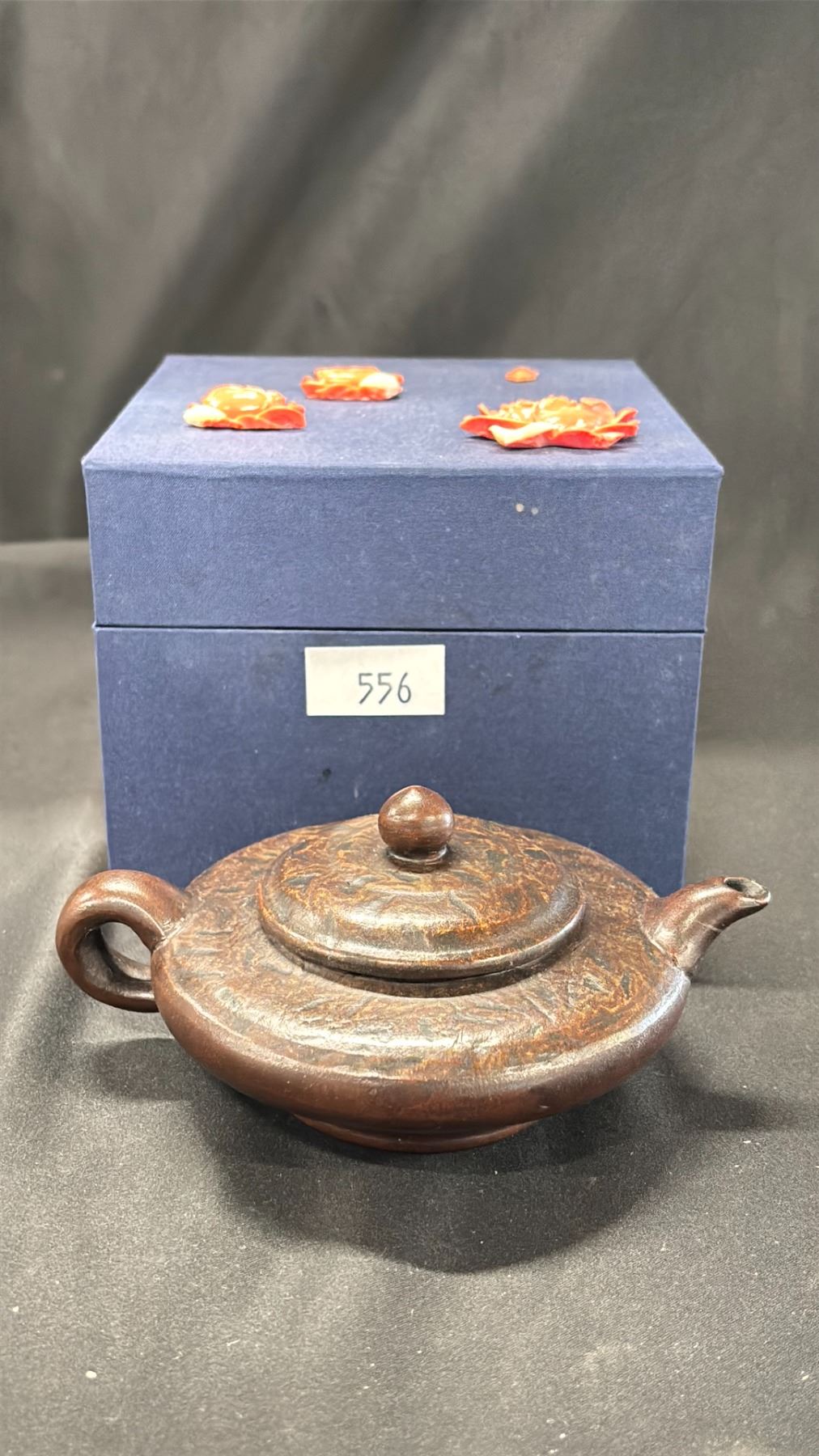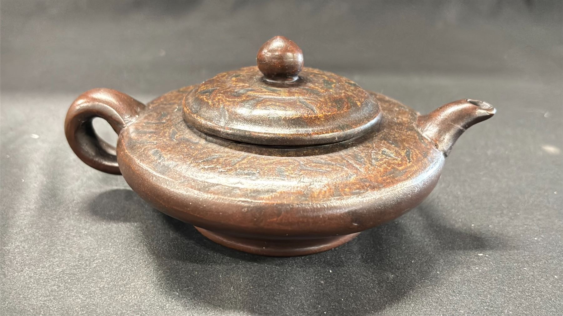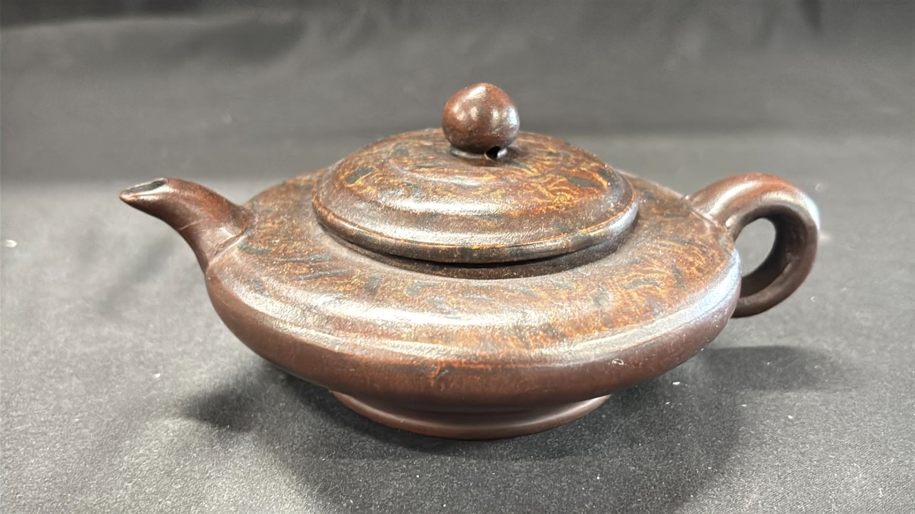 A 'BURNING CLOUDS' PURPLE CLAY TEAPOT