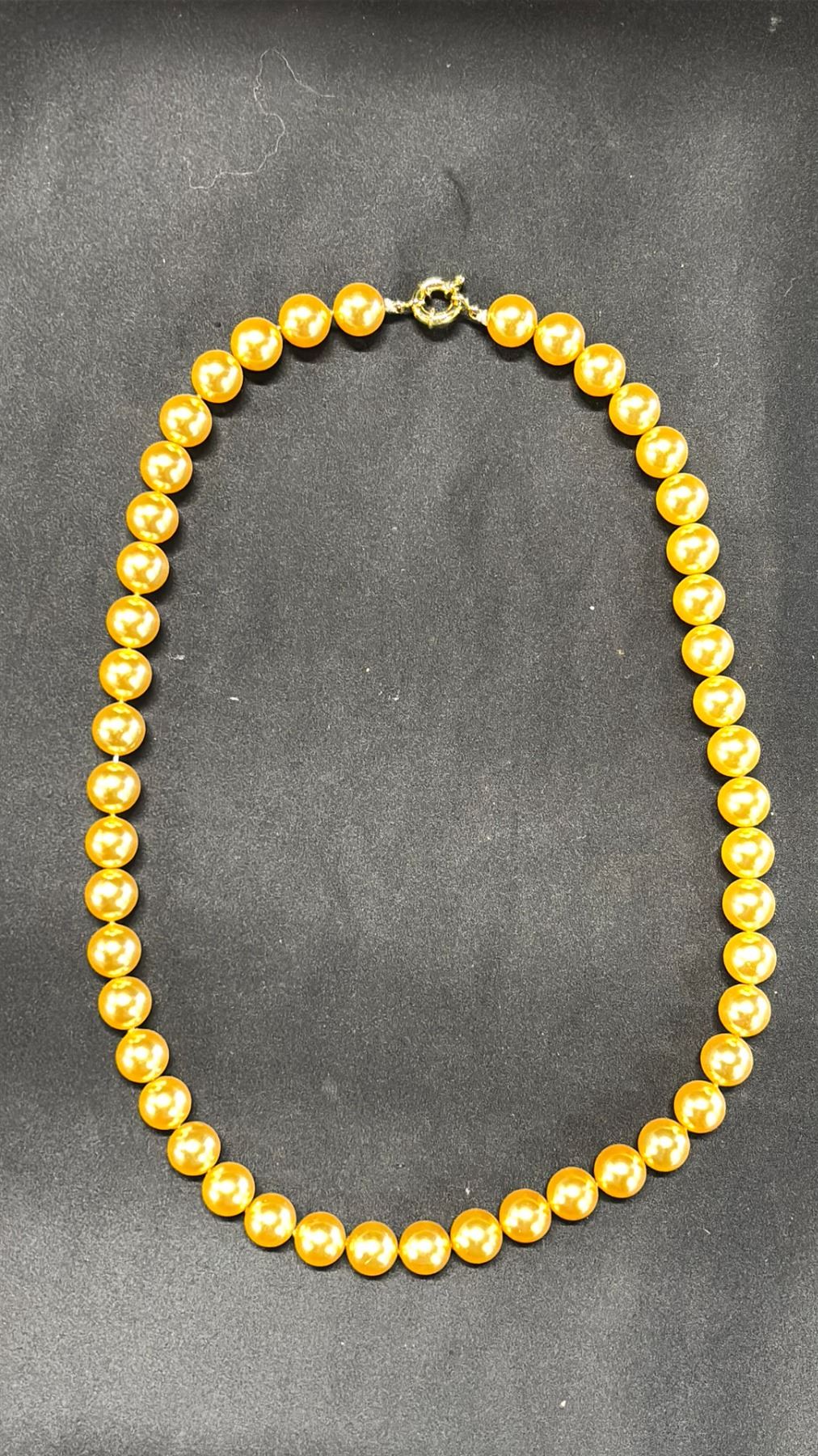 A JAPANESE GOLDEN SHELL PEARL NECKLACE