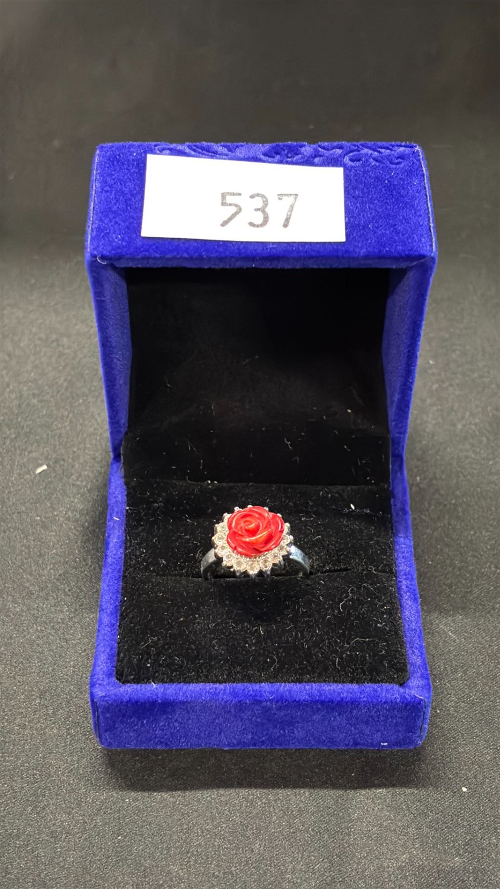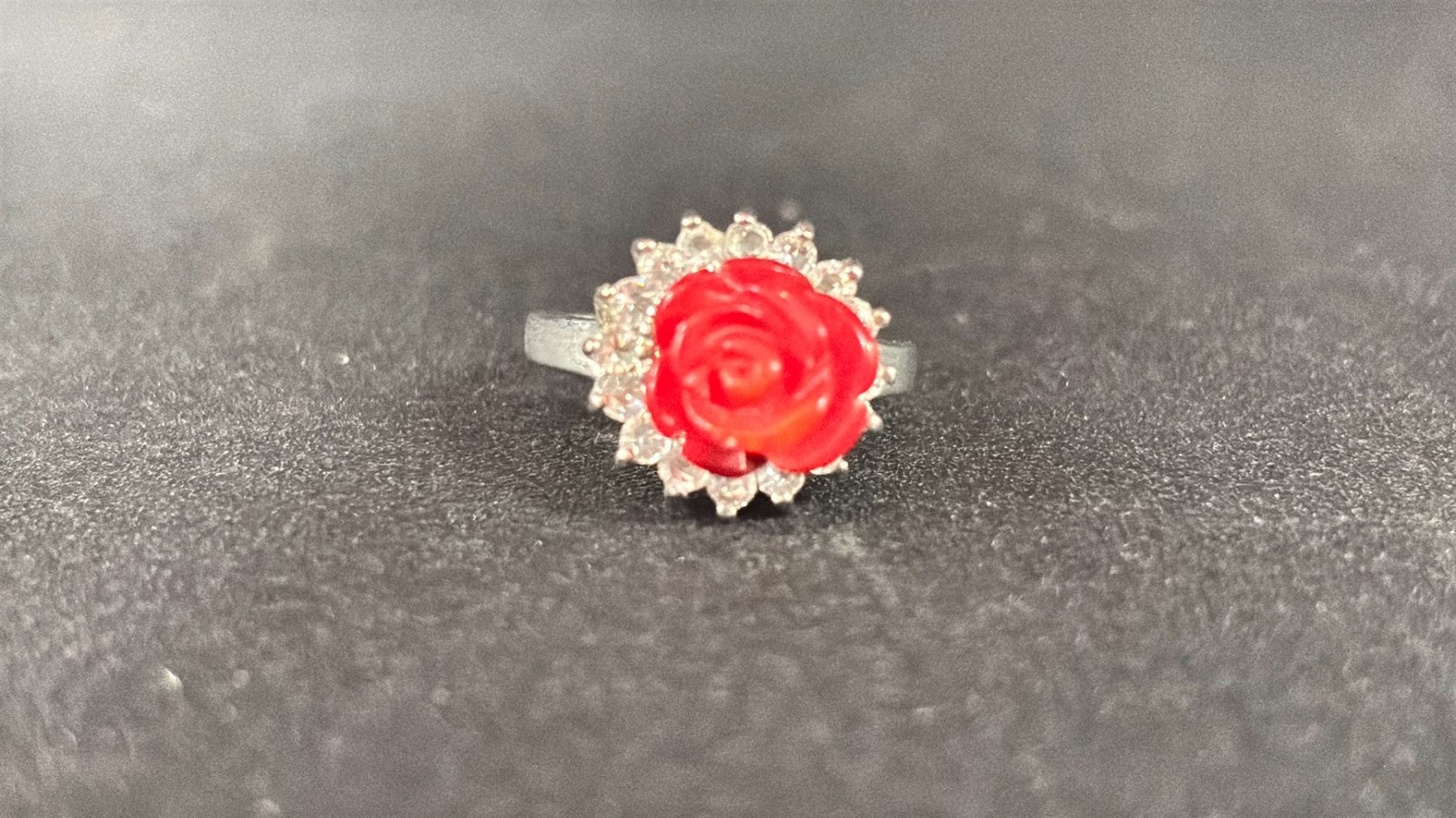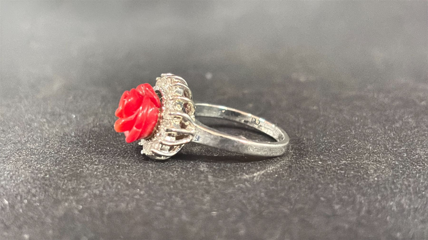A JAPANESE RED CORAL FLOWER RING