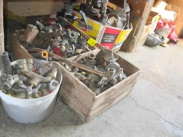 A LOT OF MISC PLUMBING PIECES, BRASS, COPPER, DOOR HARDWARE ETC.