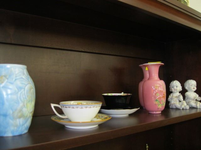 A LOT OF MISC VASES, TEA CUPS, FIGURINES