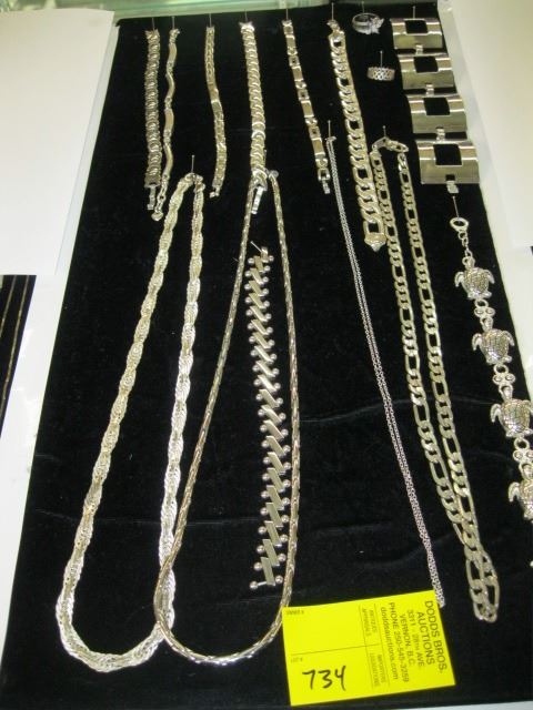 A LOT OF SILVER COLOR NECKLACES & BRACELETS