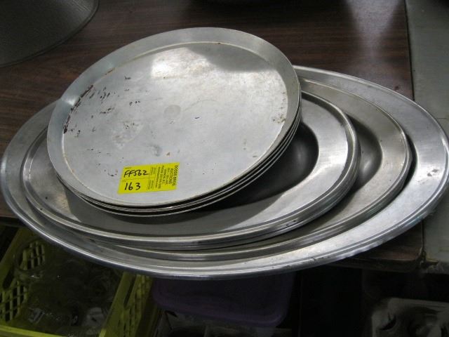 A LOT OF STAINLESS PLATTERS & PIZZA PANS