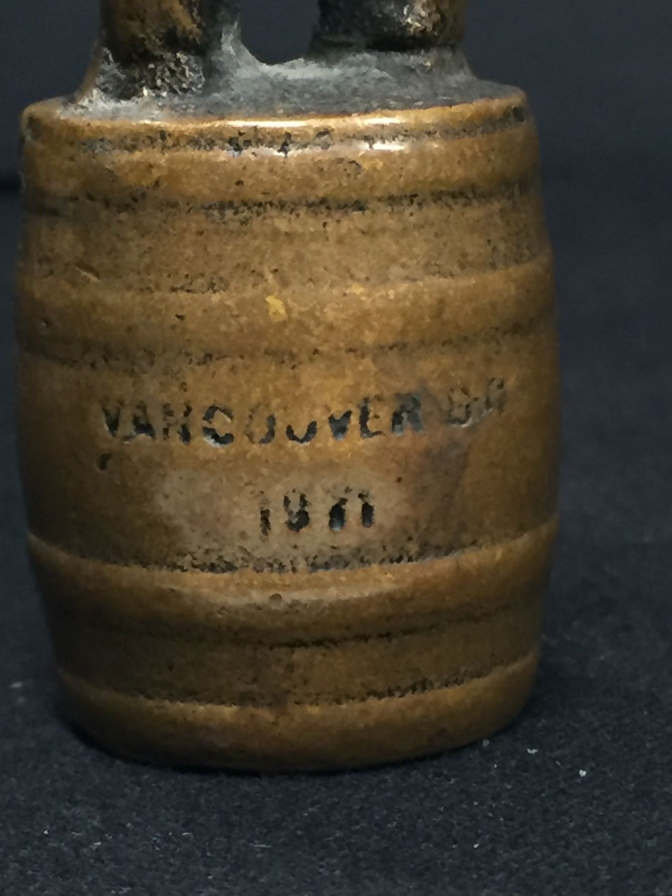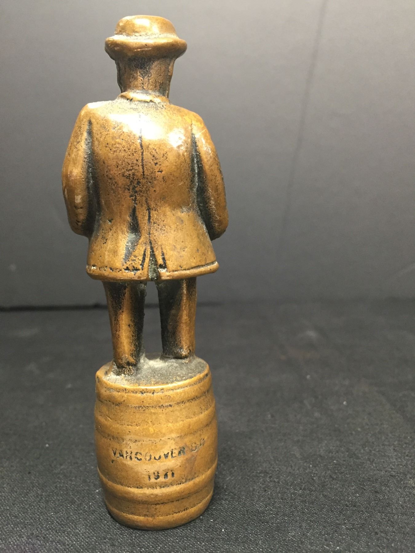 A Nice 4" H Brass " Gassy Jack" Gastown Statue. Very Nicely Made. Nice Piece of Vancouver Memorabilia